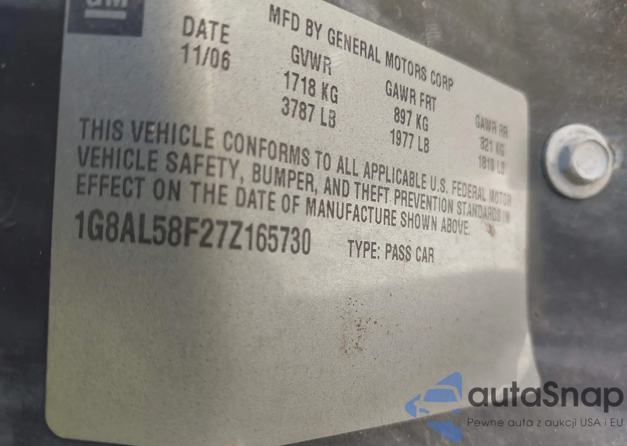 • VIN 1G8AL58F27Z165730