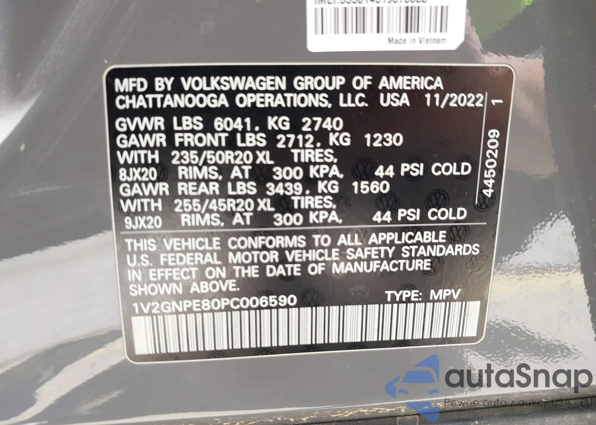 LOT: 42178241 VIN: 1V2GNPE80PC006590