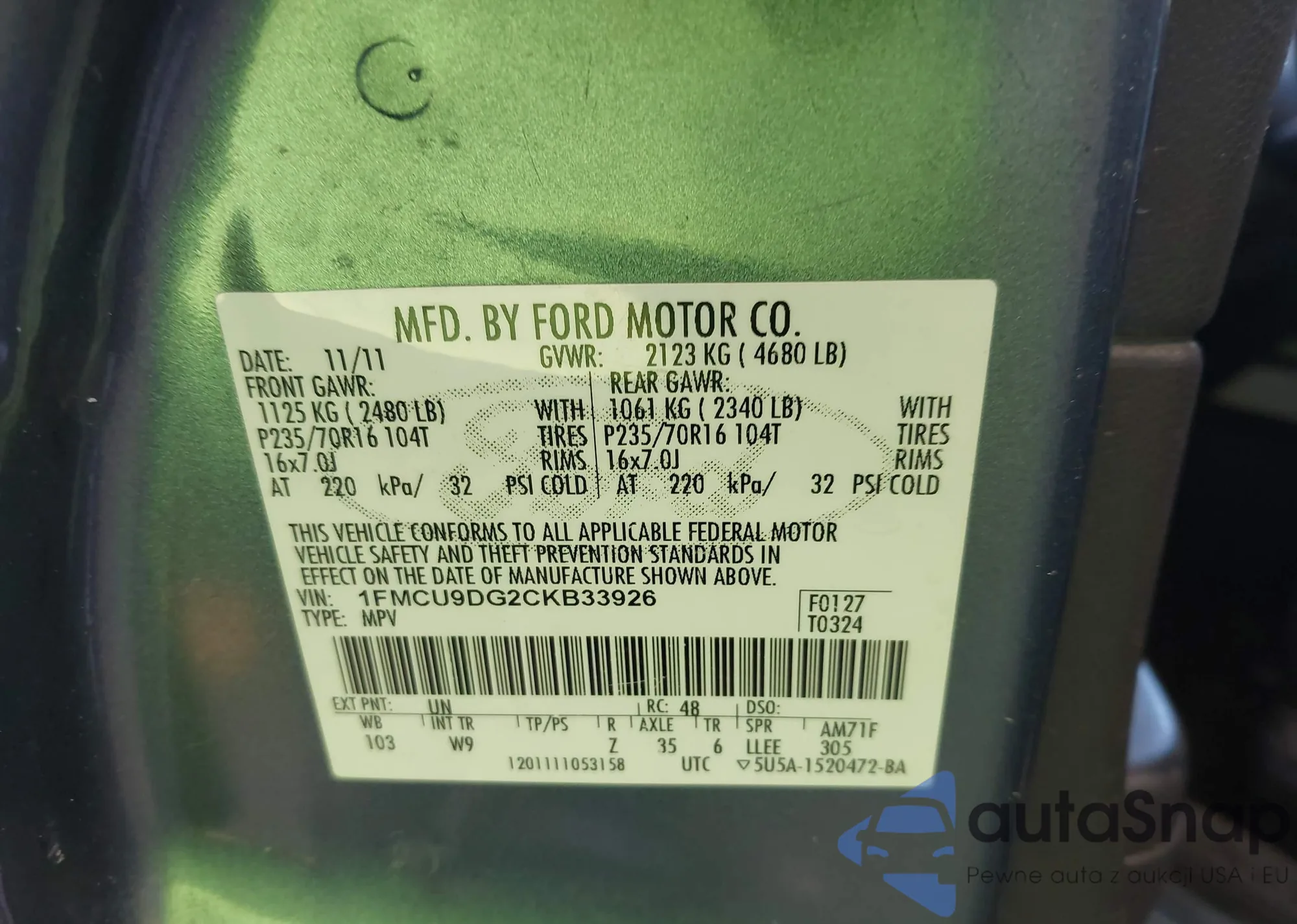 • VIN 1FMCU9DG2CKB33926