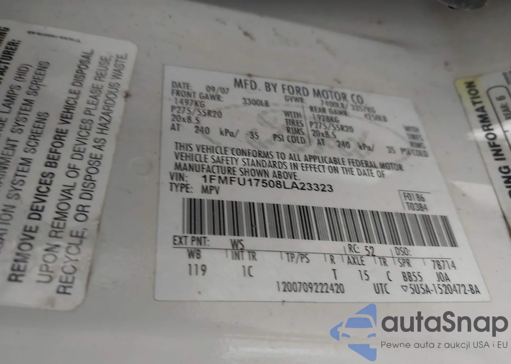 LOT: 42250870 VIN: 1FMFU17508LA23323