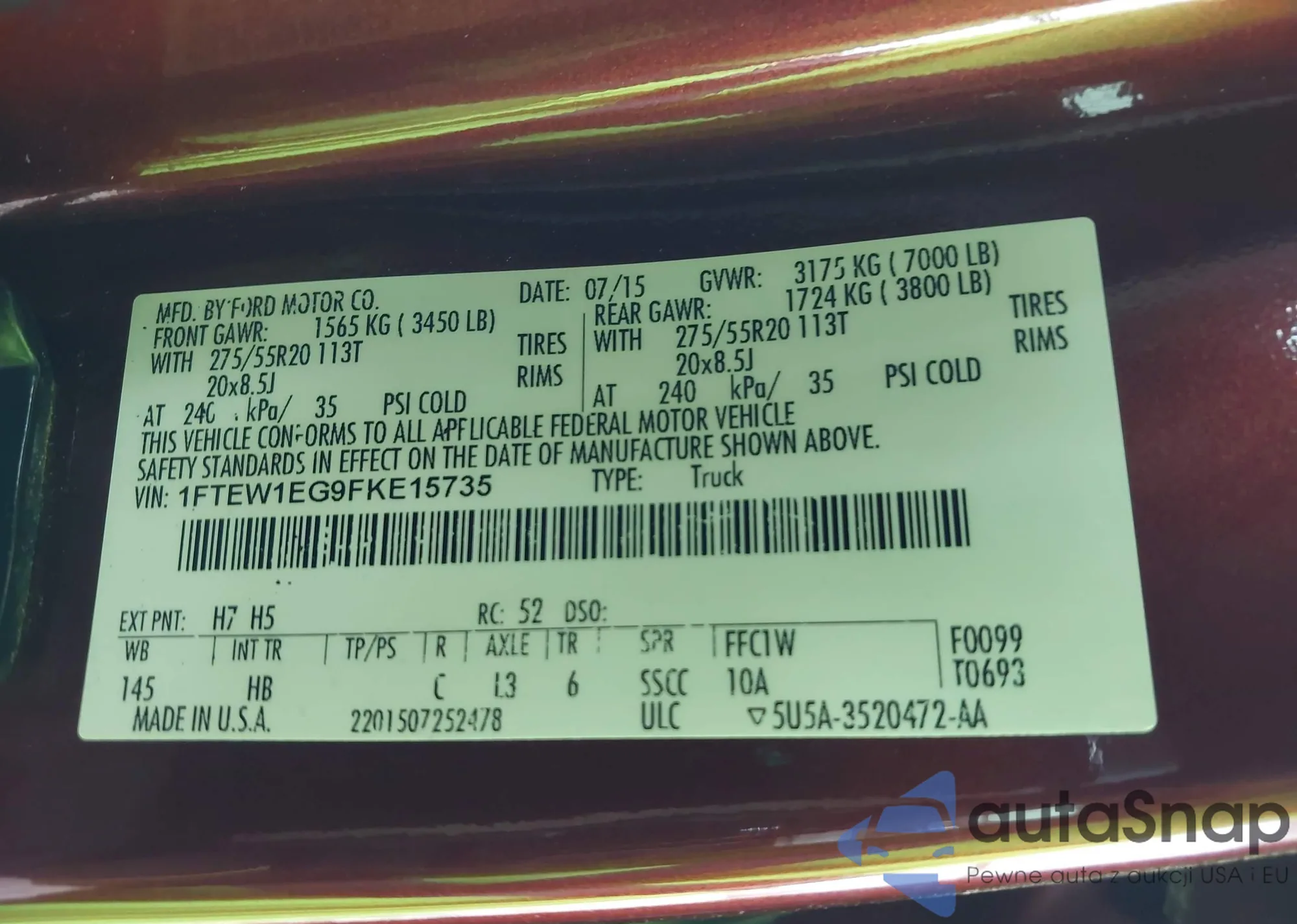 LOT: 42102887 VIN: 1FTEW1EG9FKE15735