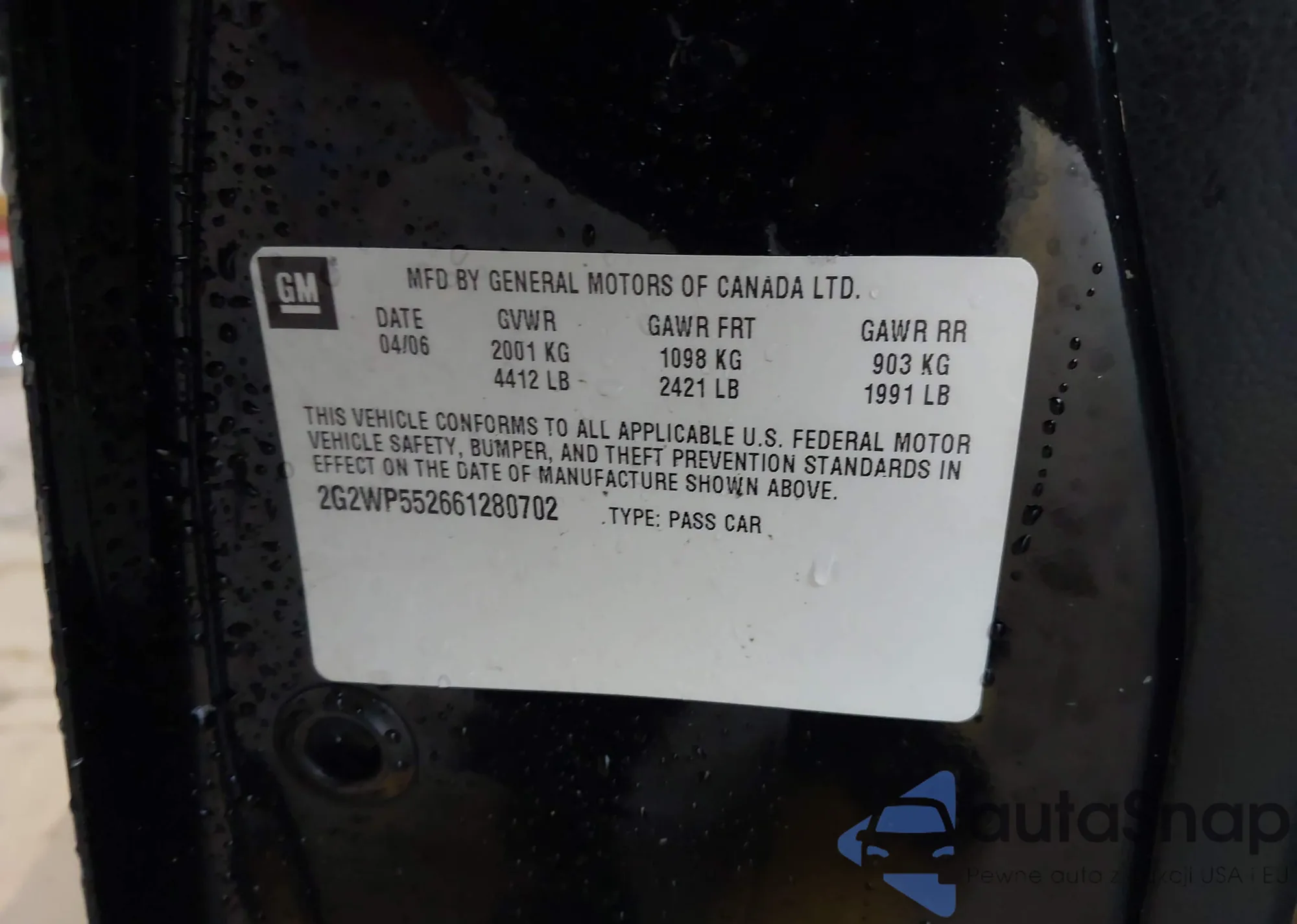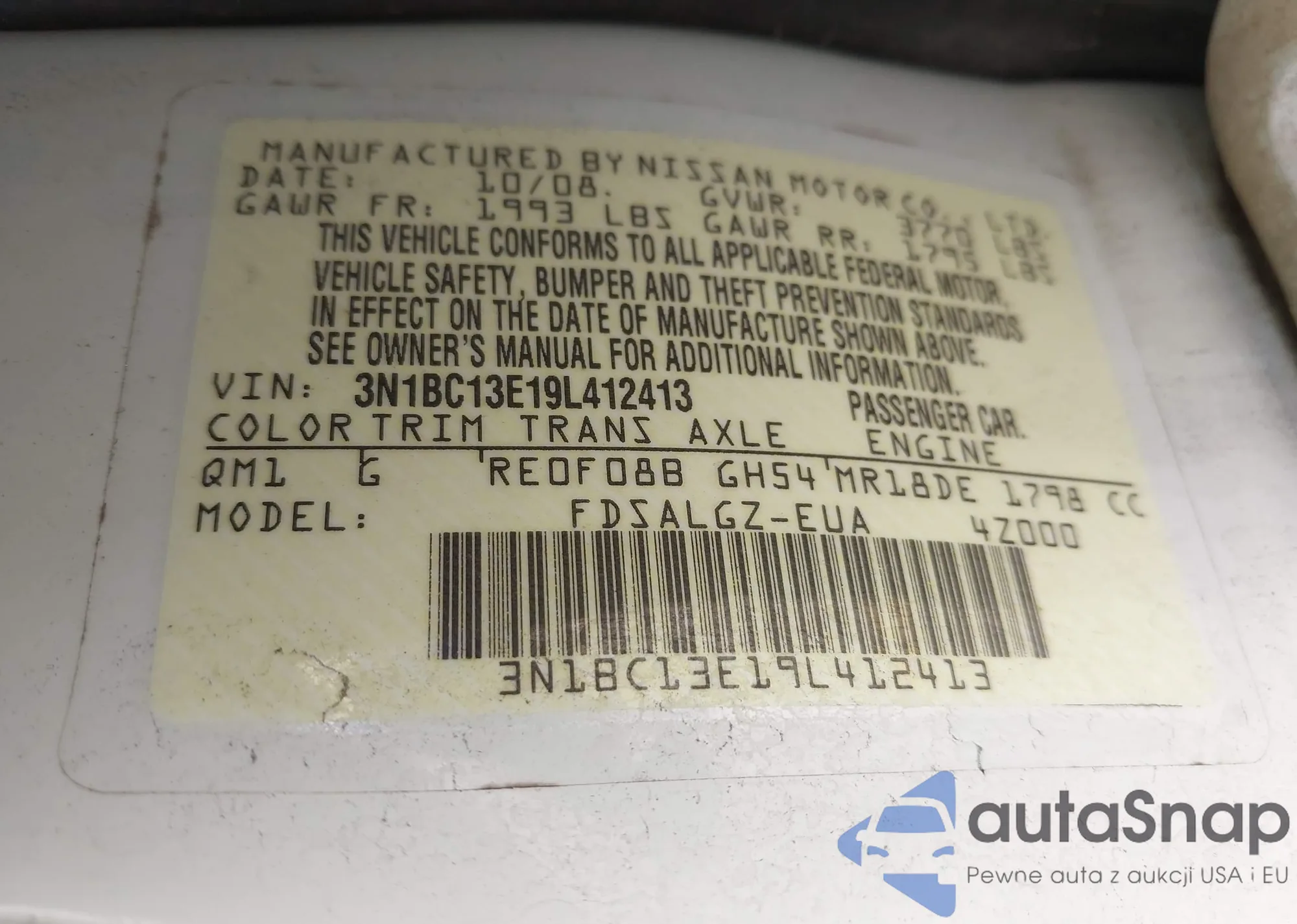 • VIN 2G1105SA8H9139407