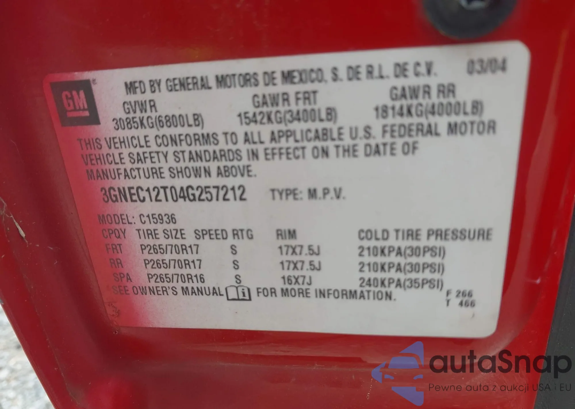• VIN 3GNEC12T04G257212