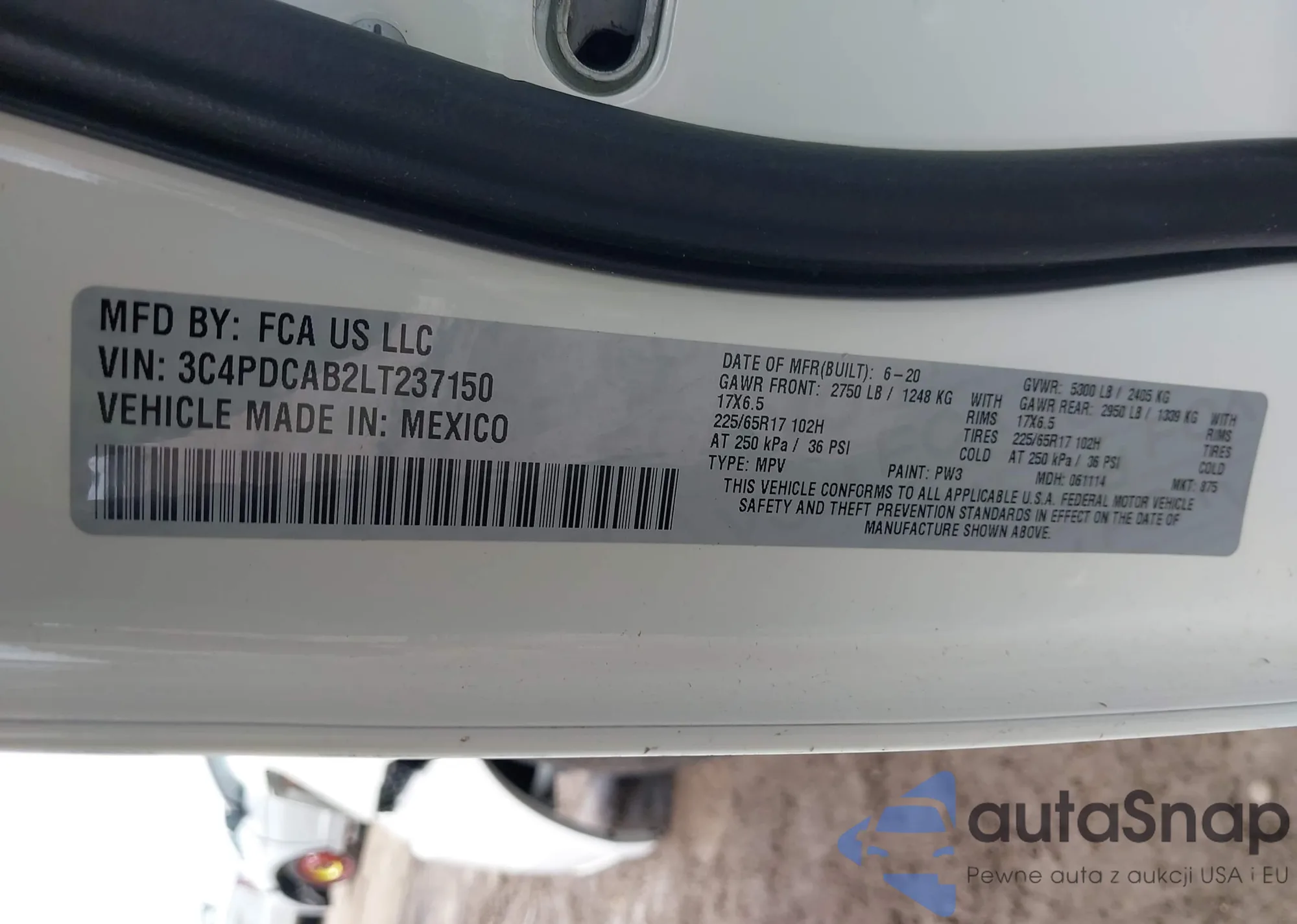 LOT: 41916862 VIN: 3C4PDCAB2LT237150
