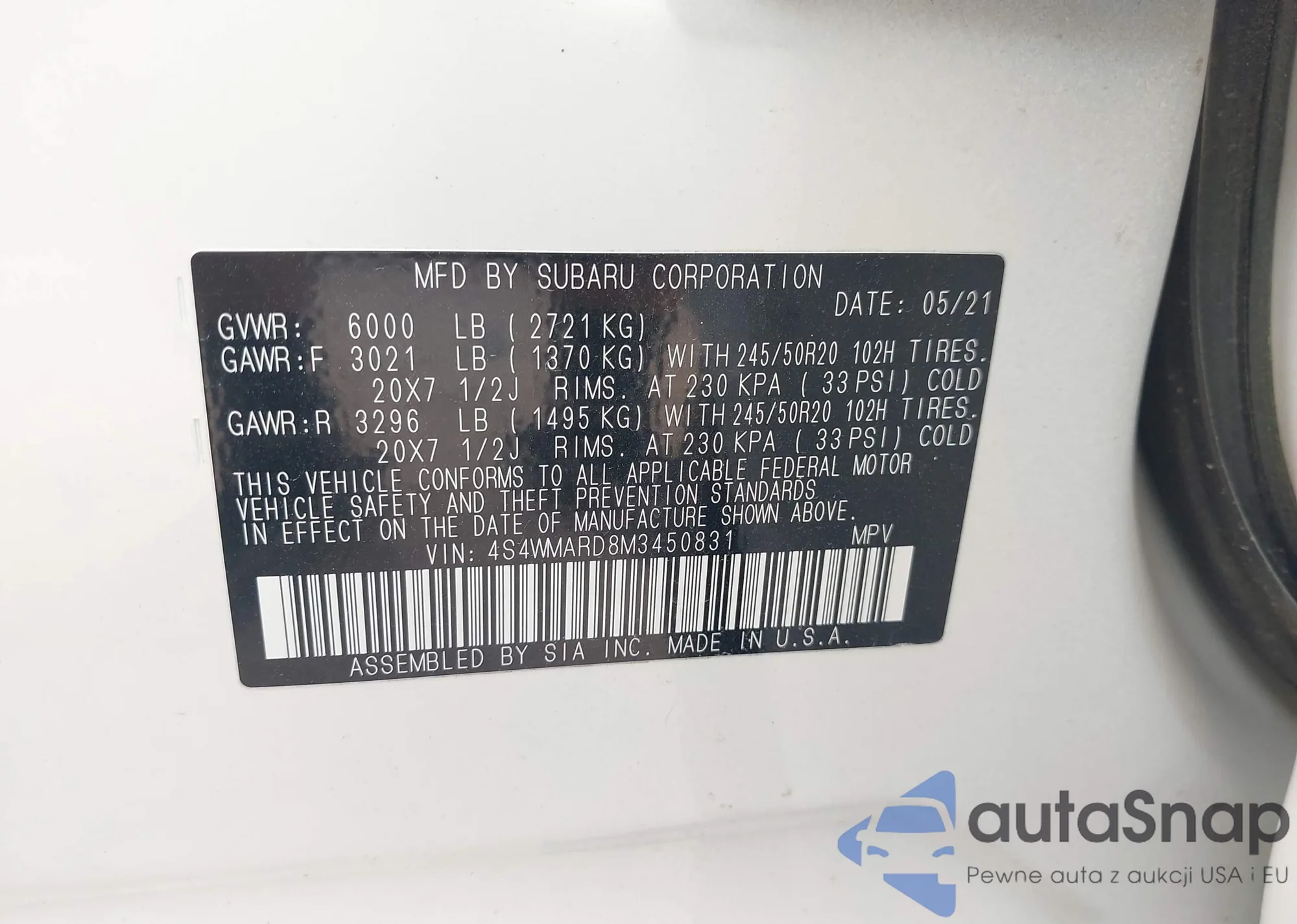• VIN 4S4WMARD8M3450831