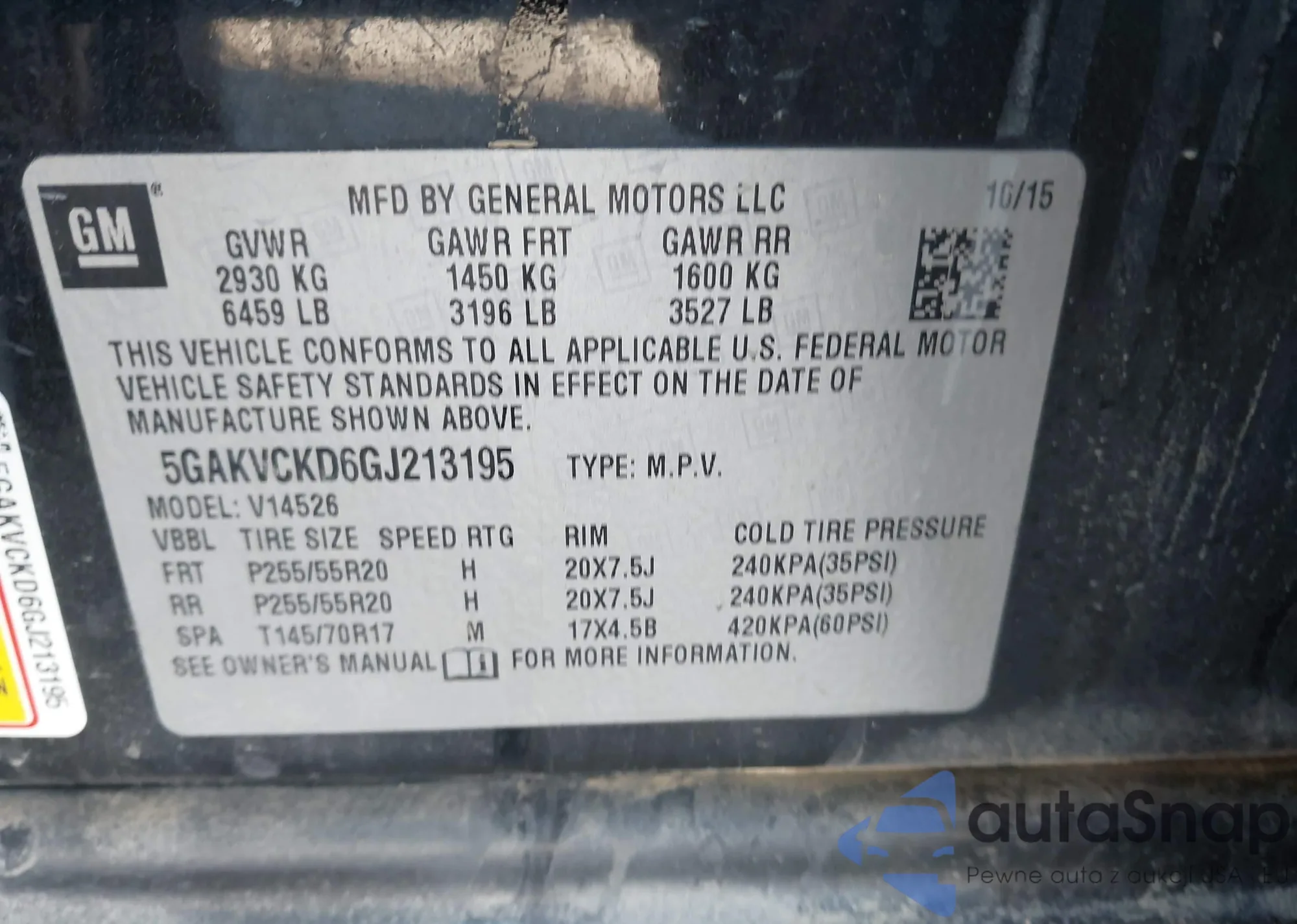 LOT: 41871500 VIN: 5GAKVCKD6GJ213195