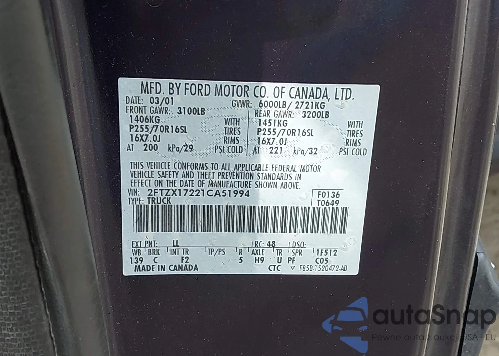 • VIN 2FTZX17221CA51994