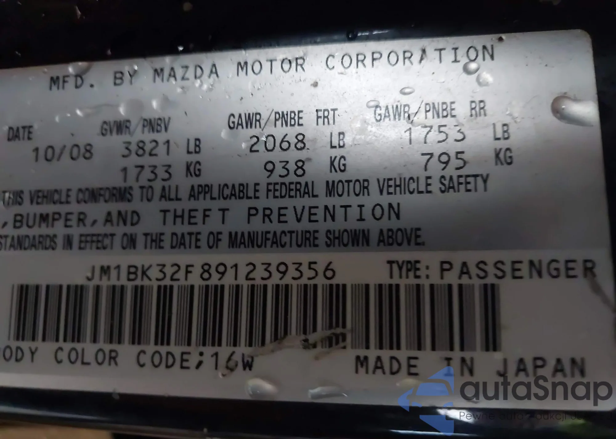 • VIN JM1BK32F891239356