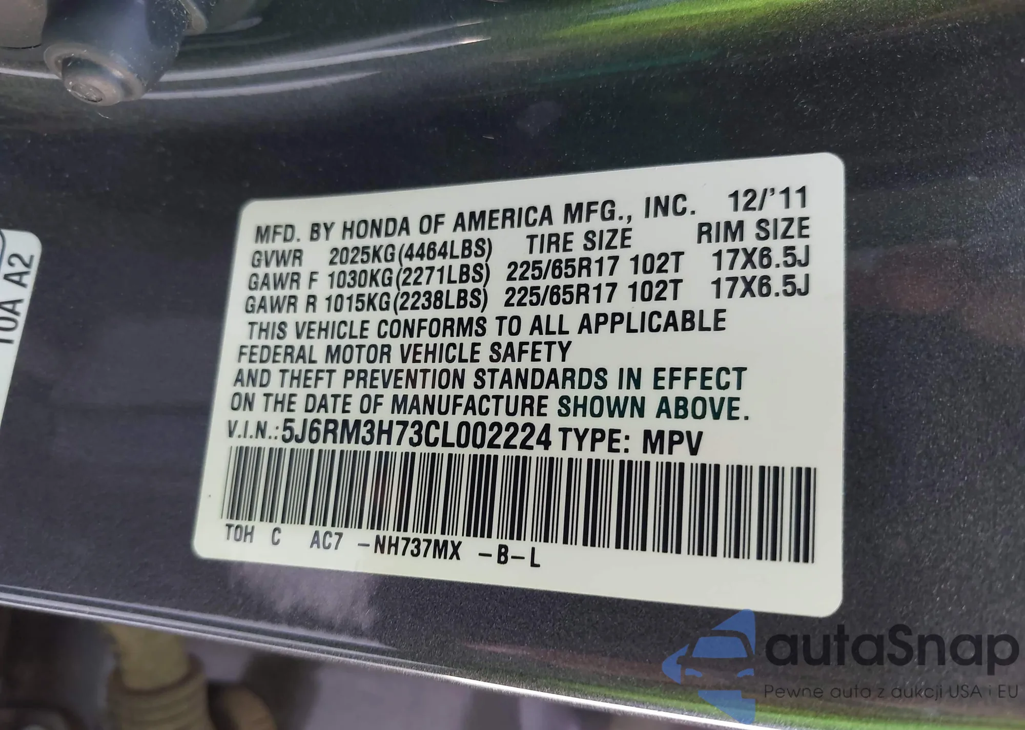 LOT: 42123454 VIN: JN8AS5MVXCW714693