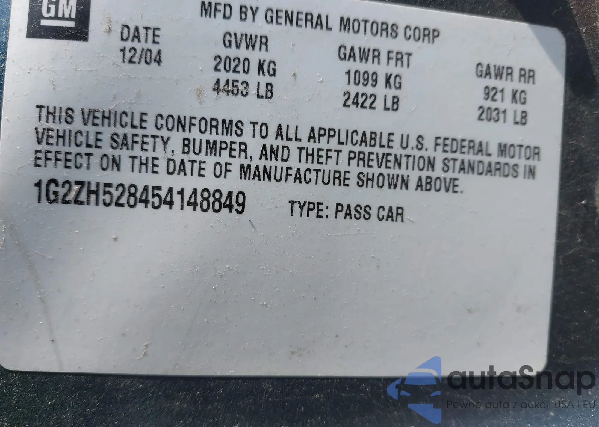 LOT: 42125448 VIN: 2G11X5SA0G9137225
