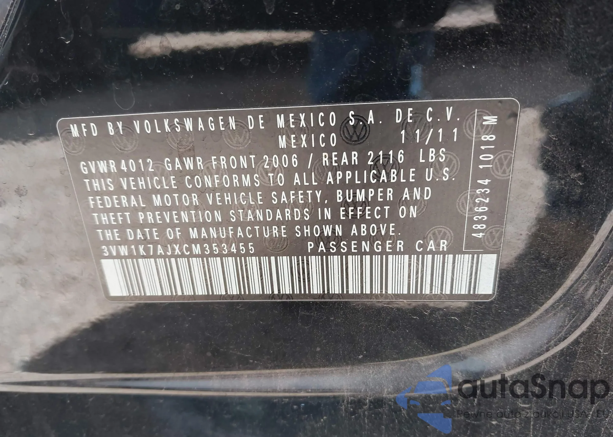 • VIN 3VW1K7AJXCM353455