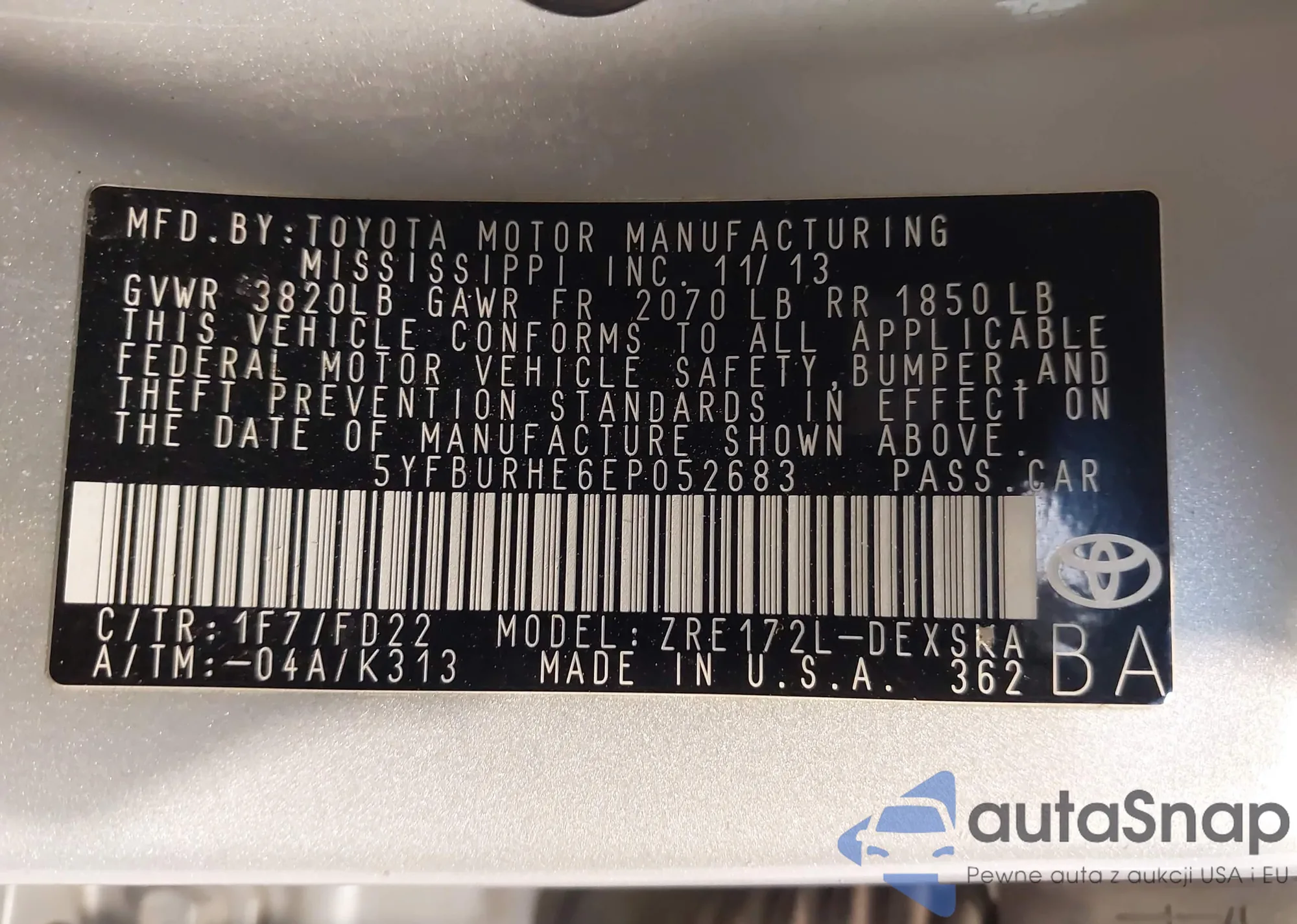 LOT: 42224049 VIN: 1NXBU4EE2AZ272564
