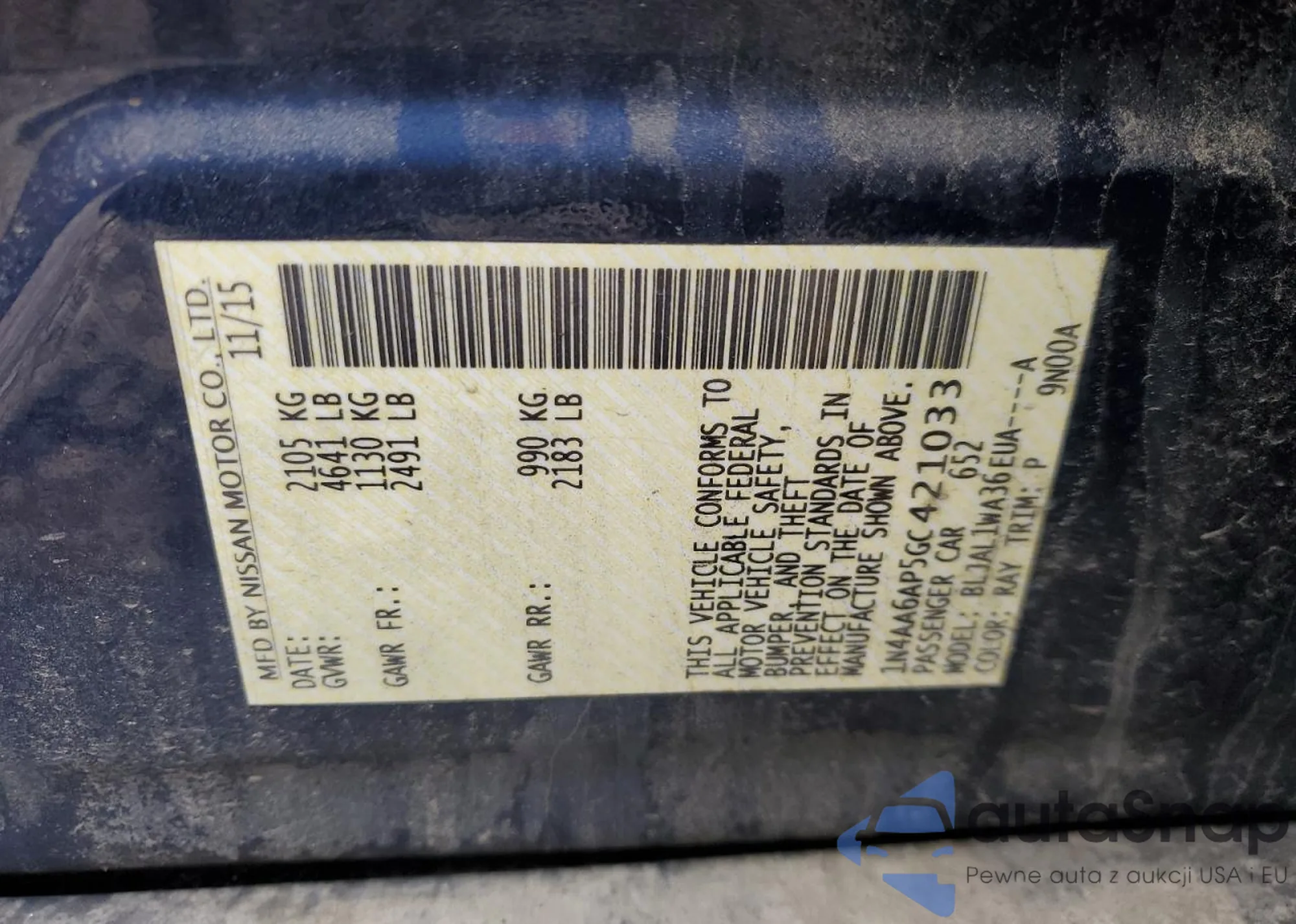 • VIN 1N4AA6AP5GC421033