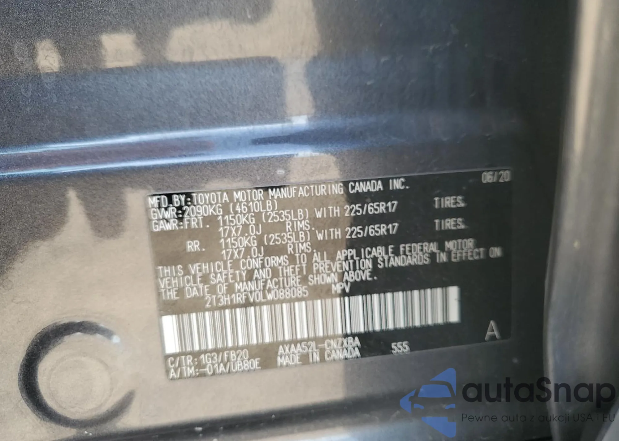 LOT: 56036055 VIN: 2T3H1RFV0LW088085