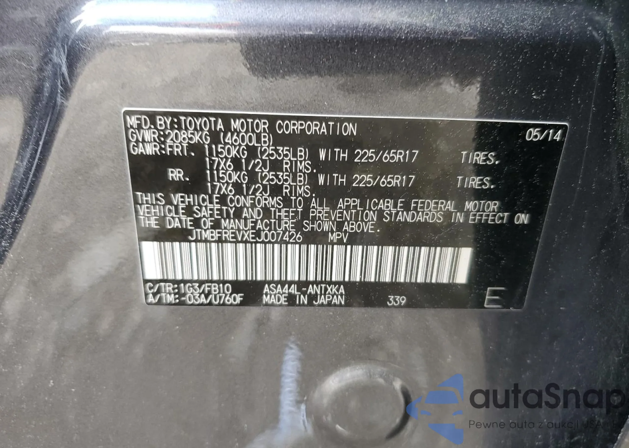 LOT: 59263645 VIN: 4T4BF1FK0ER402706