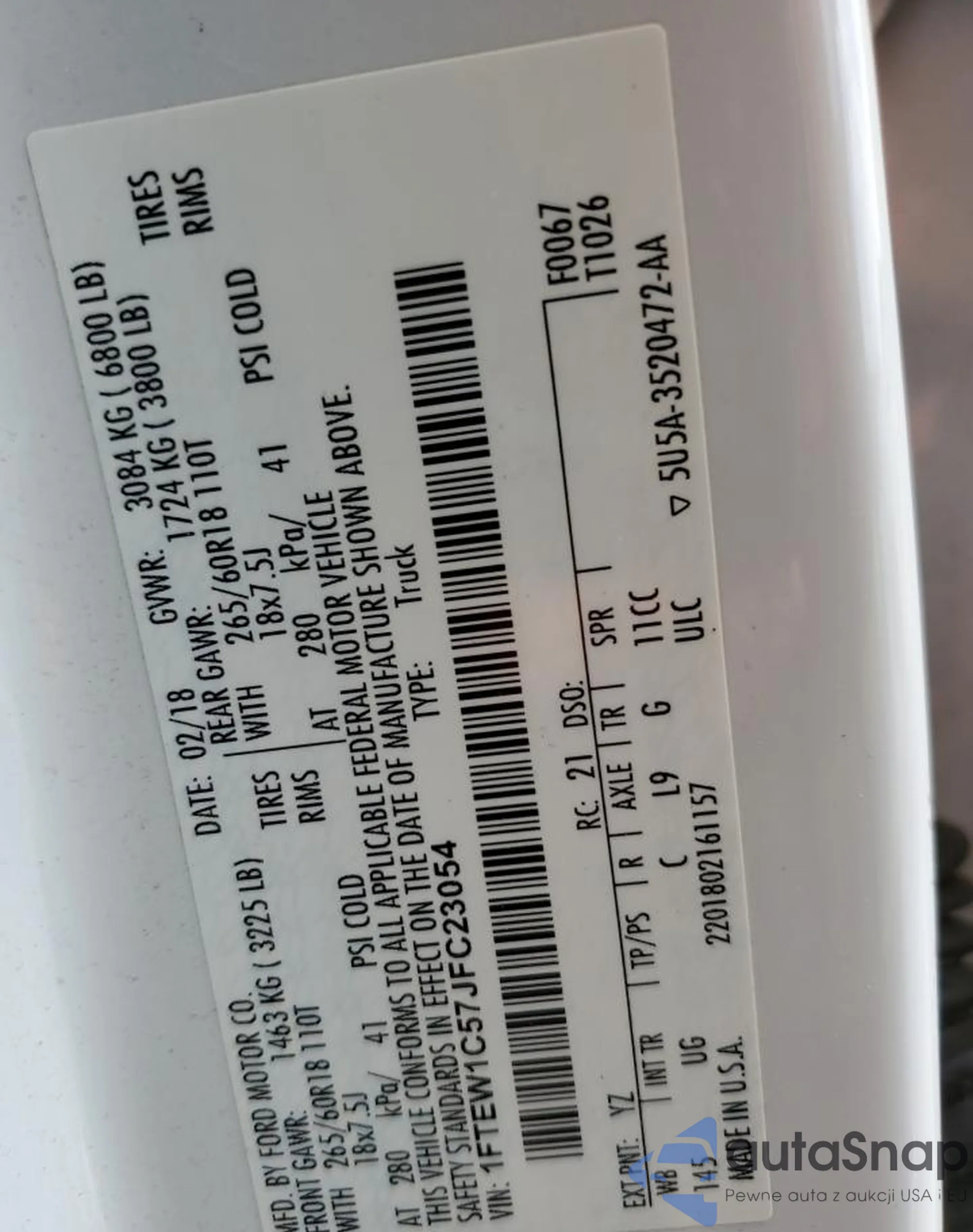• VIN 1FMCU9JX8FUC85271