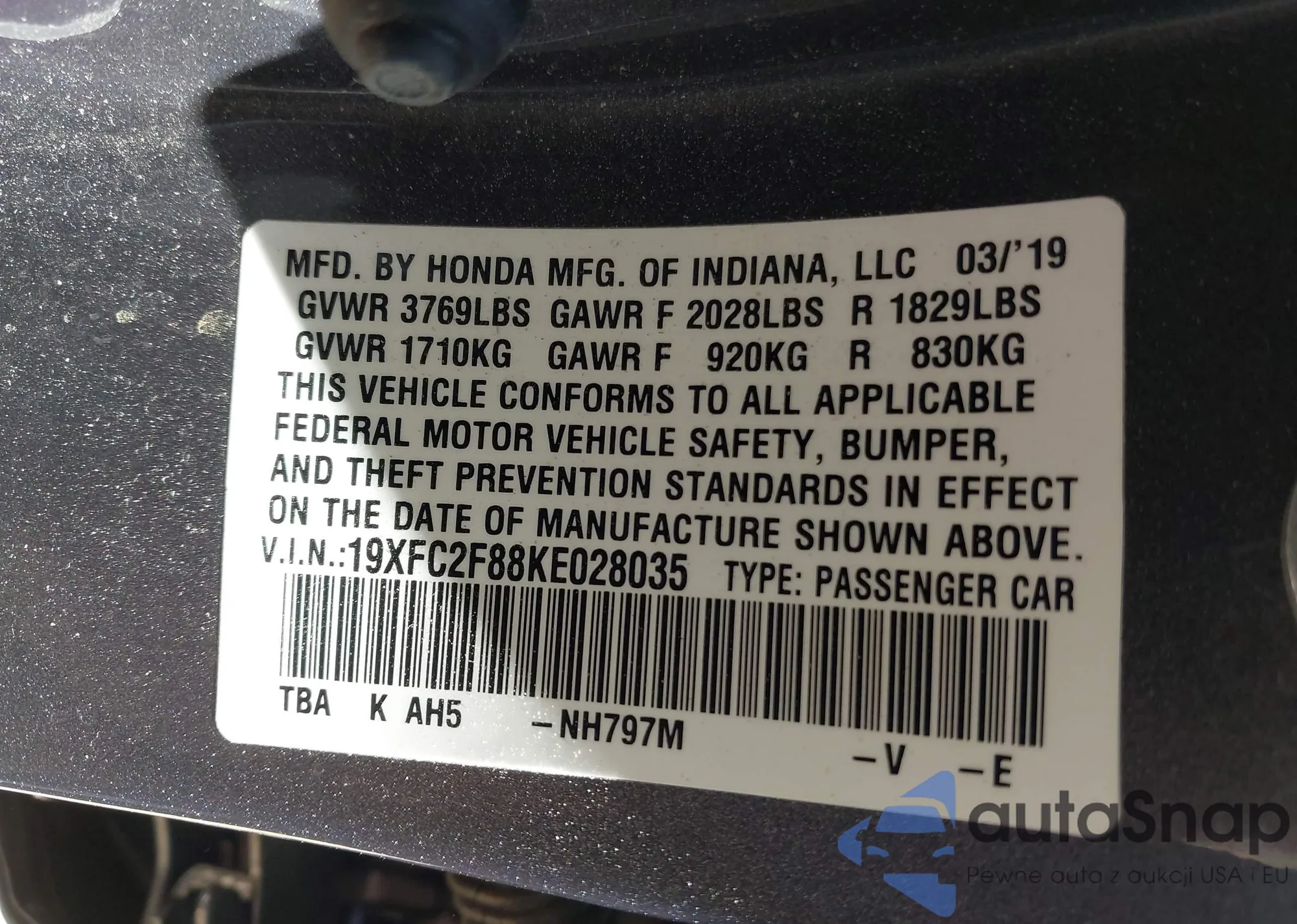 LOT: 42148870 VIN: JN1EV7EL5HM550062