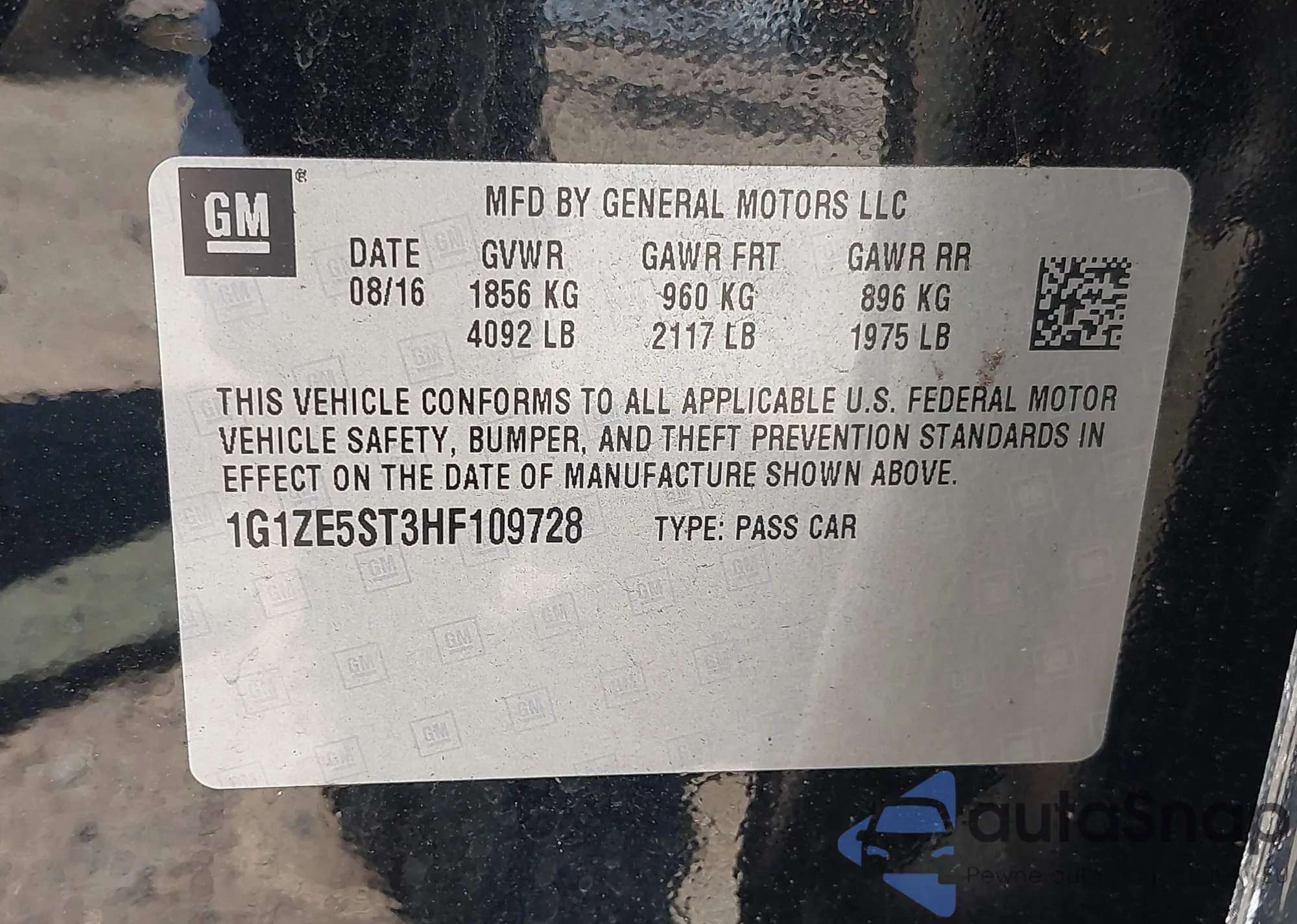 • VIN 1G1ZE5ST3HF109728