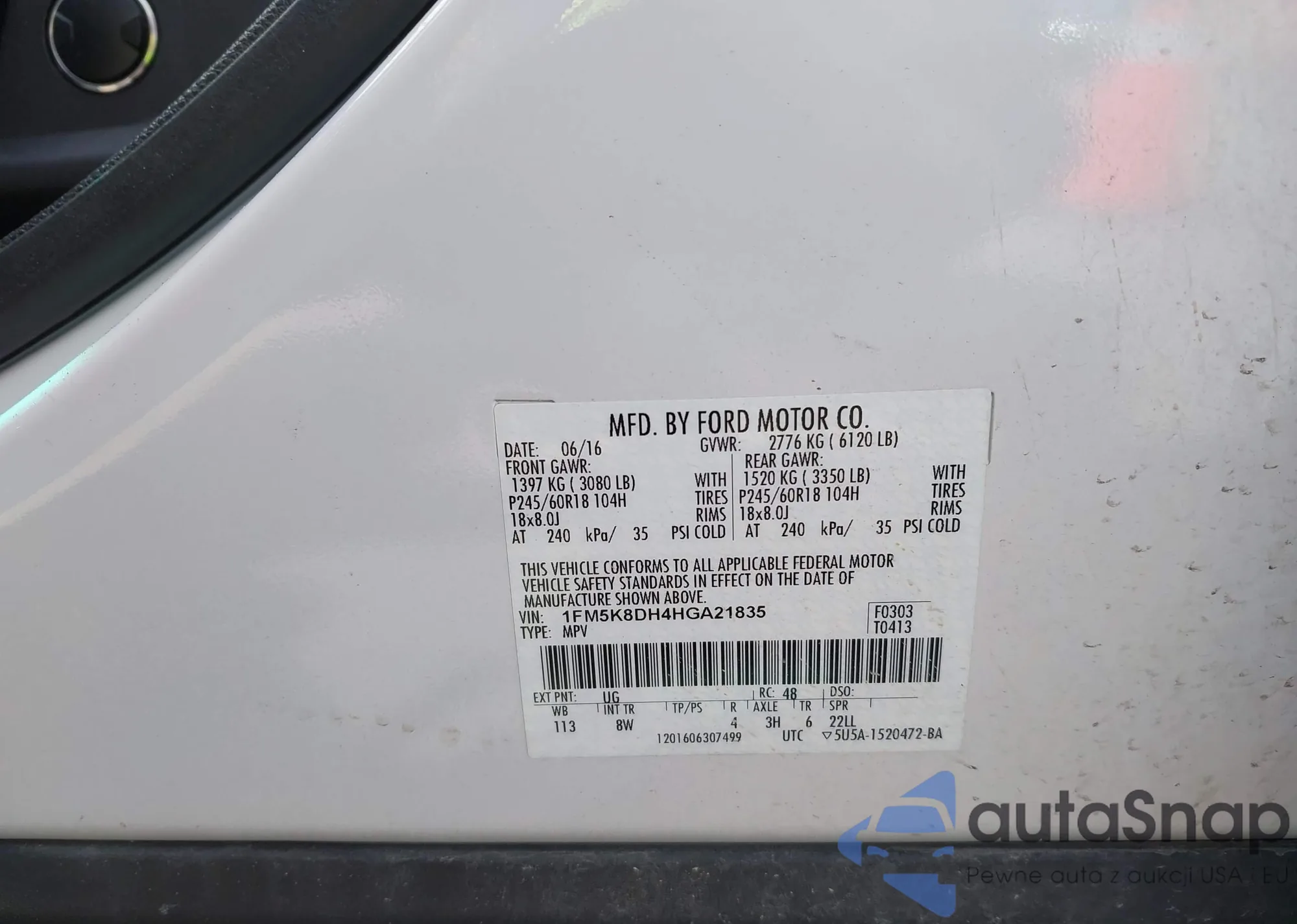 LOT: 42148816 VIN: 1FM5K8DH4HGA21835