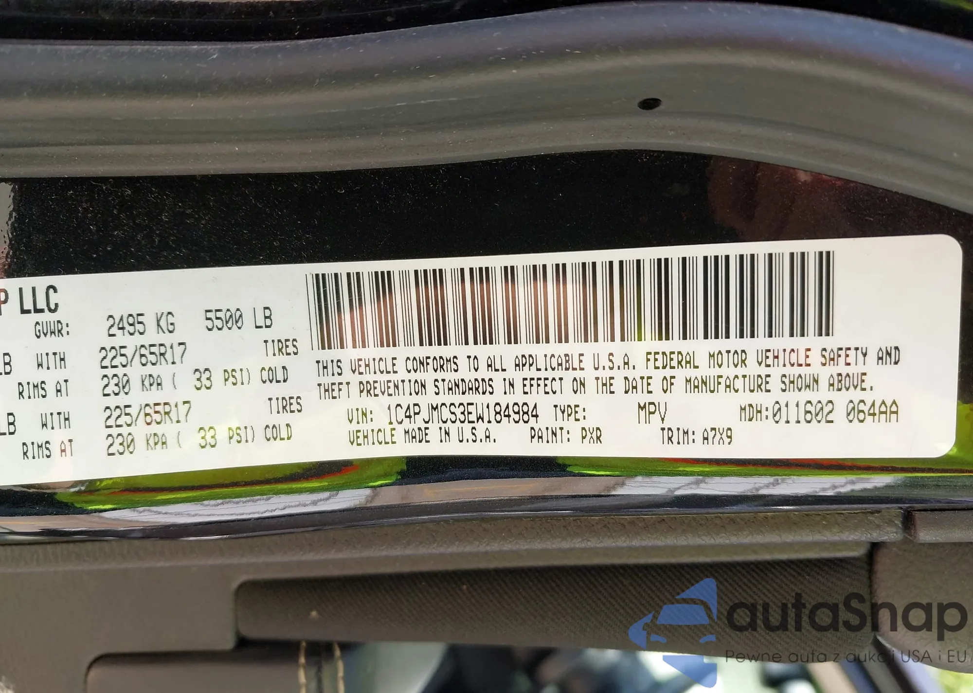 LOT: 42301604 VIN: 1C4PJMCS3EW184984