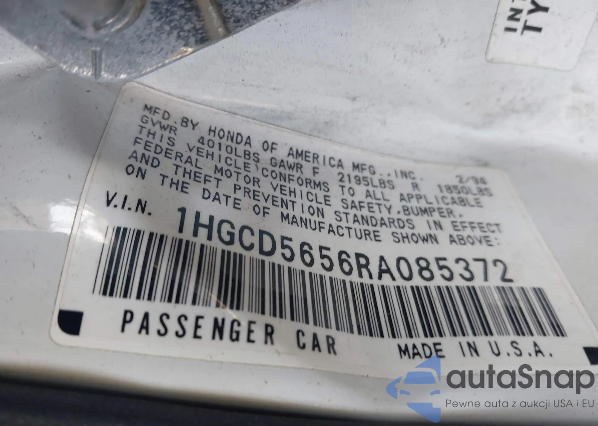 • VIN 1HGCD5656RA085372