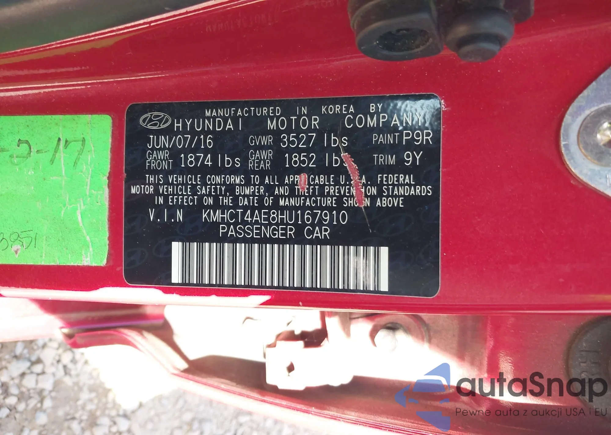 • VIN KMHCT4AE8HU167910