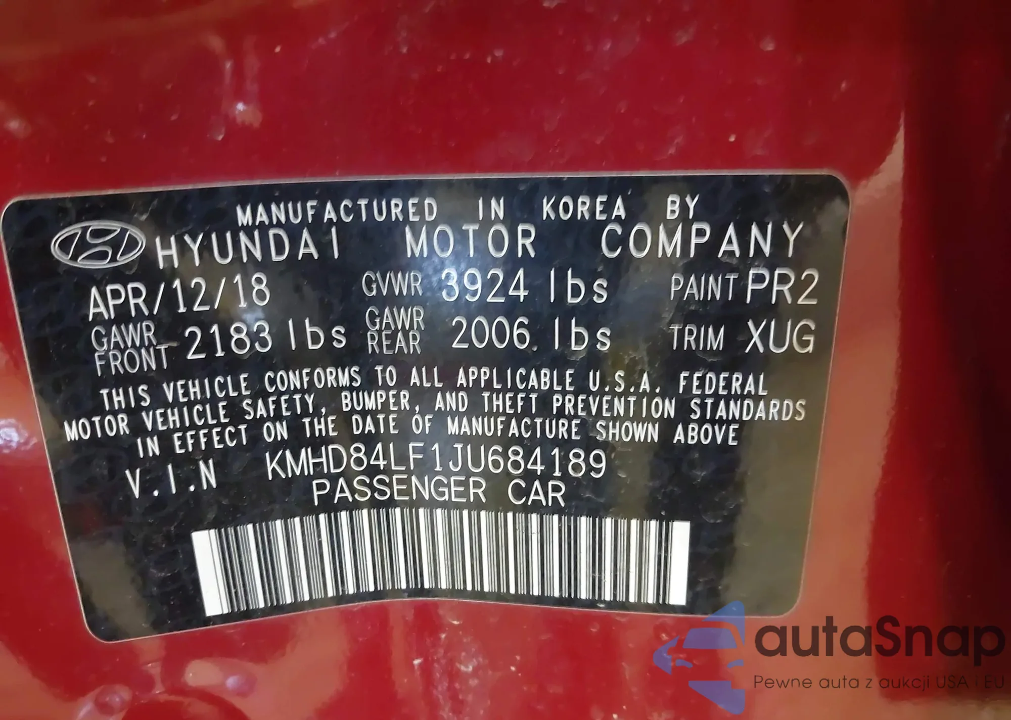 • VIN 4T1B11HKXJU672462