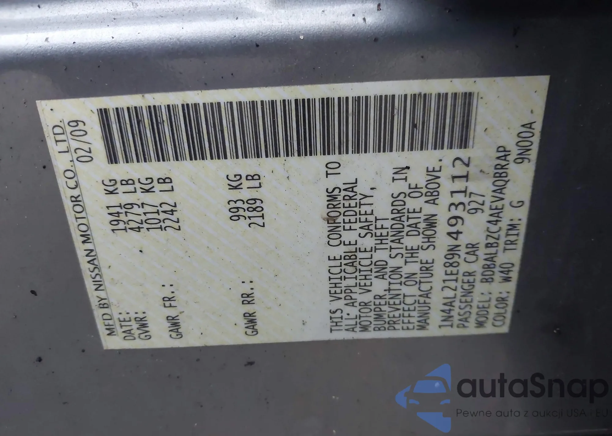 LOT: 41858935 VIN: 1N4AL3AP4JC293514