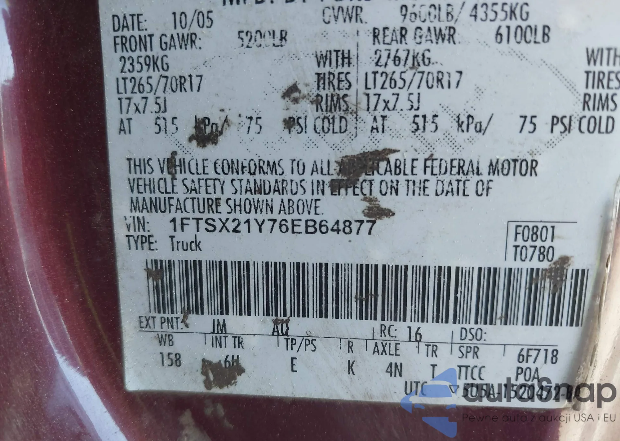 LOT: 42352292 VIN: 1FTNF20575EC03568