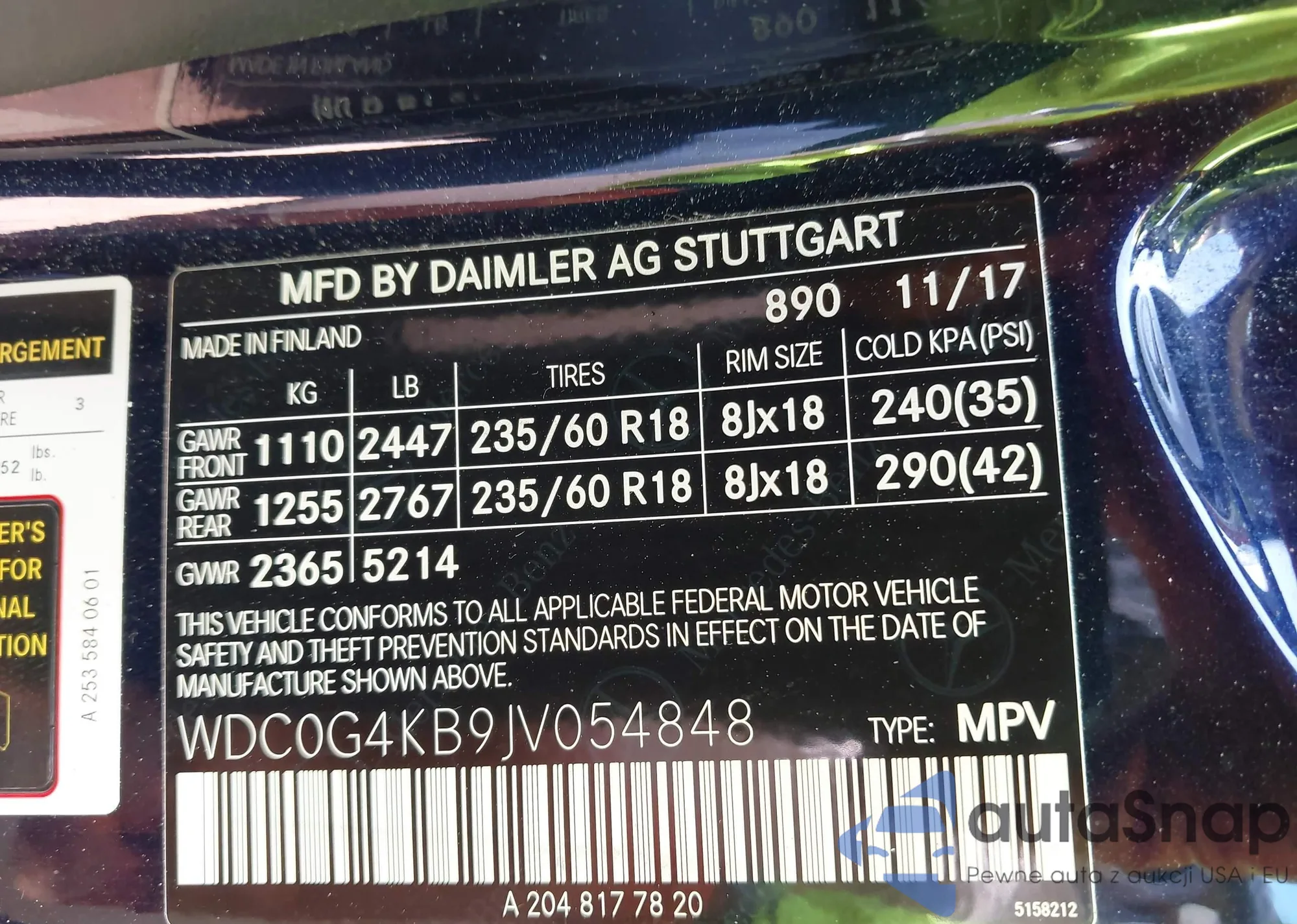 LOT: 42171257 VIN: WDDGF8ABXDR281372
