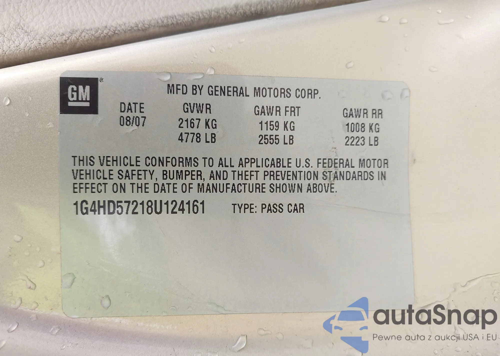 LOT: 42350931 VIN: 1G4HD57218U124161