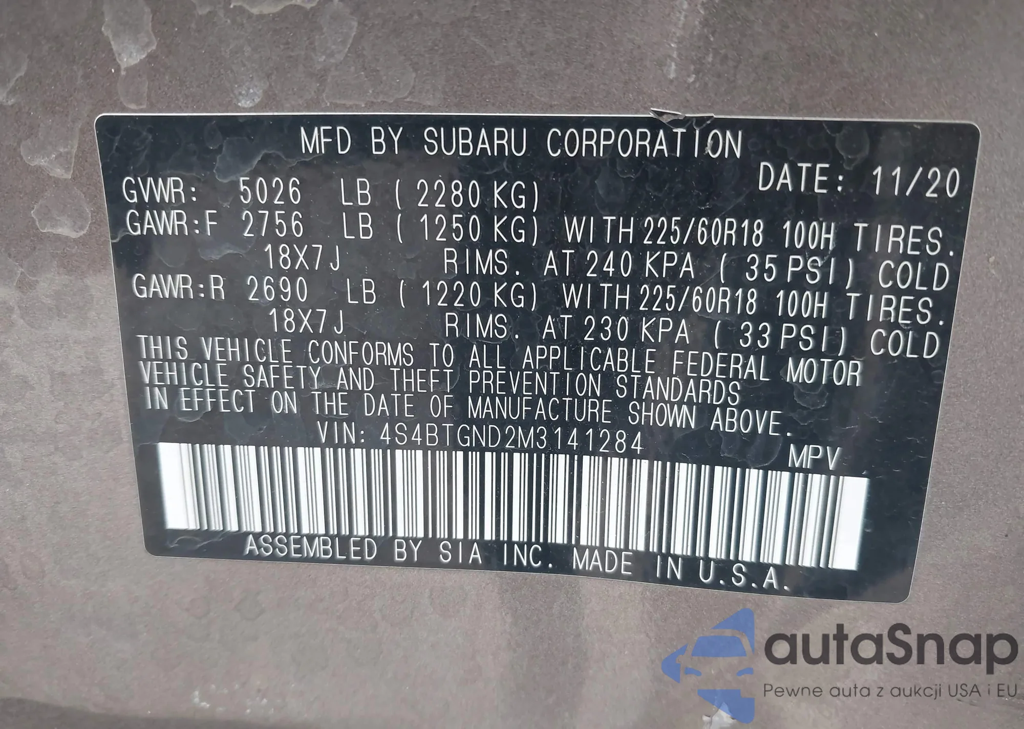 LOT: 42113791 VIN: 4S4BTGND2M3141284