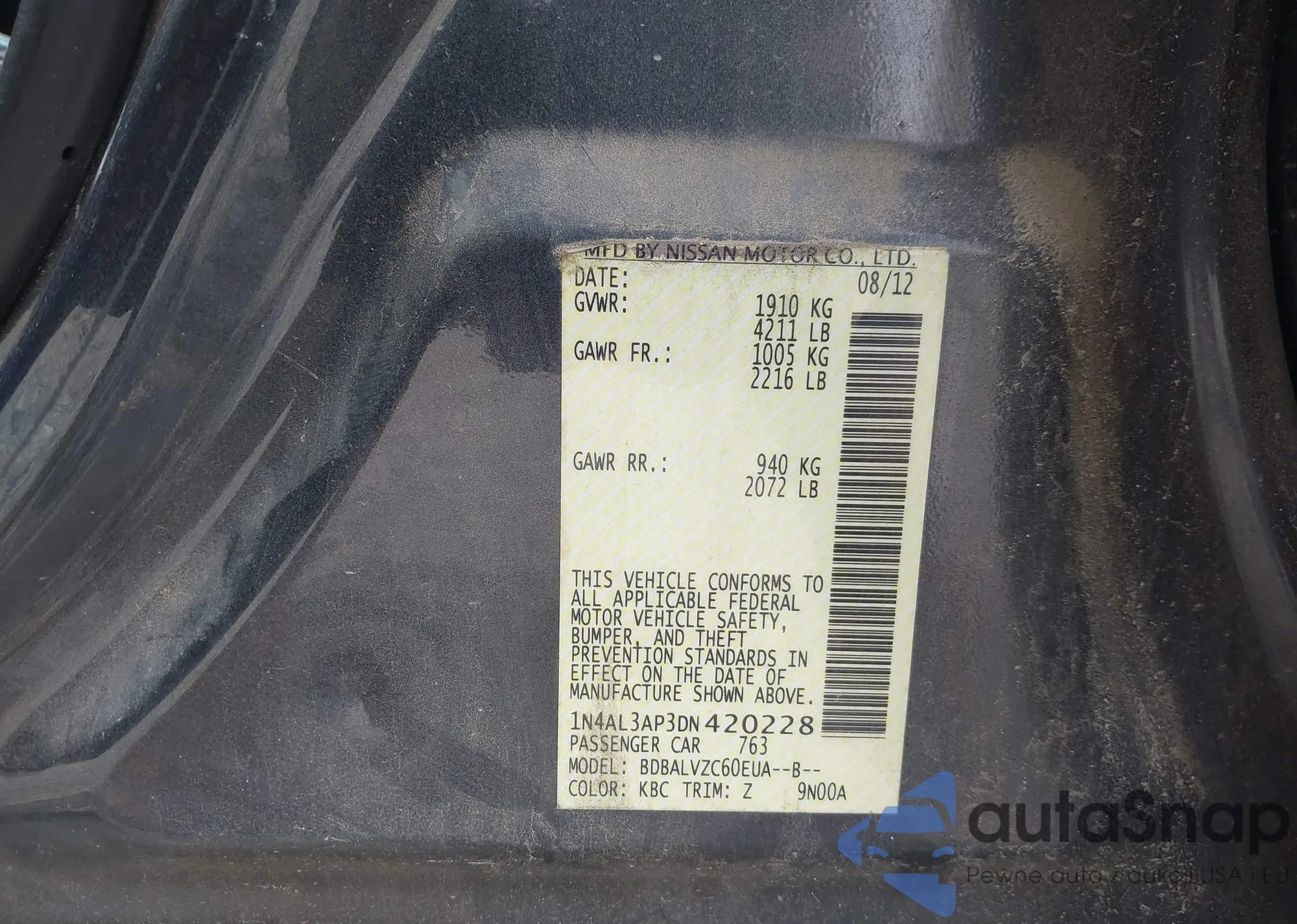 LOT: 42123074 VIN: 1N4AL3AP3DN420228