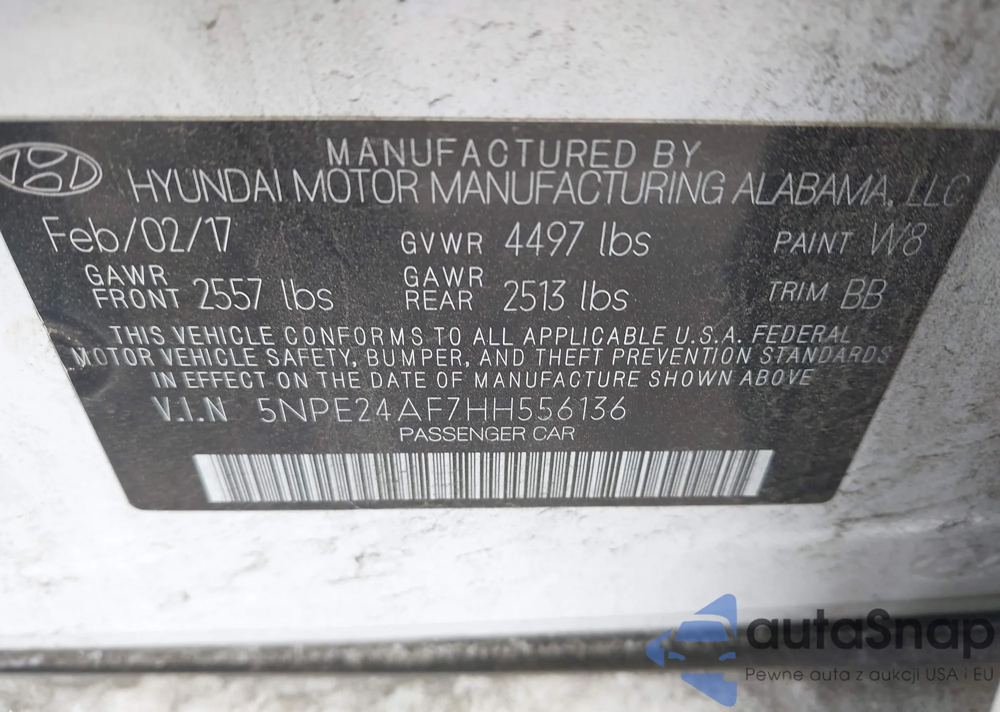 LOT: 42100579 VIN: 2HKRW6H37HH209886