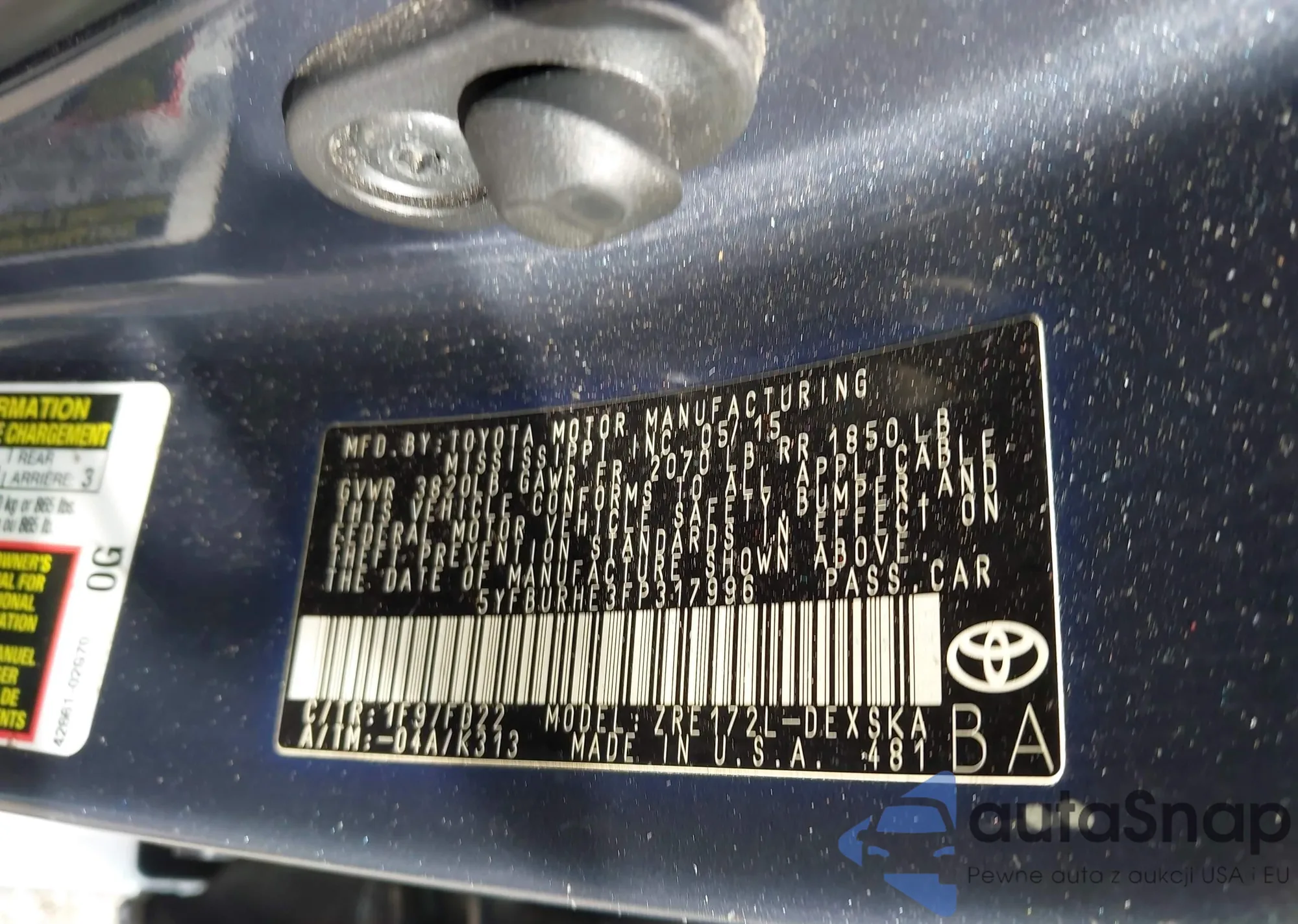 • VIN 5YFBURHE3FP317996