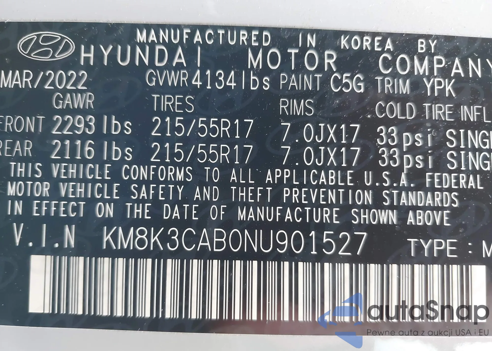 • VIN KMHEC4A44BA016605