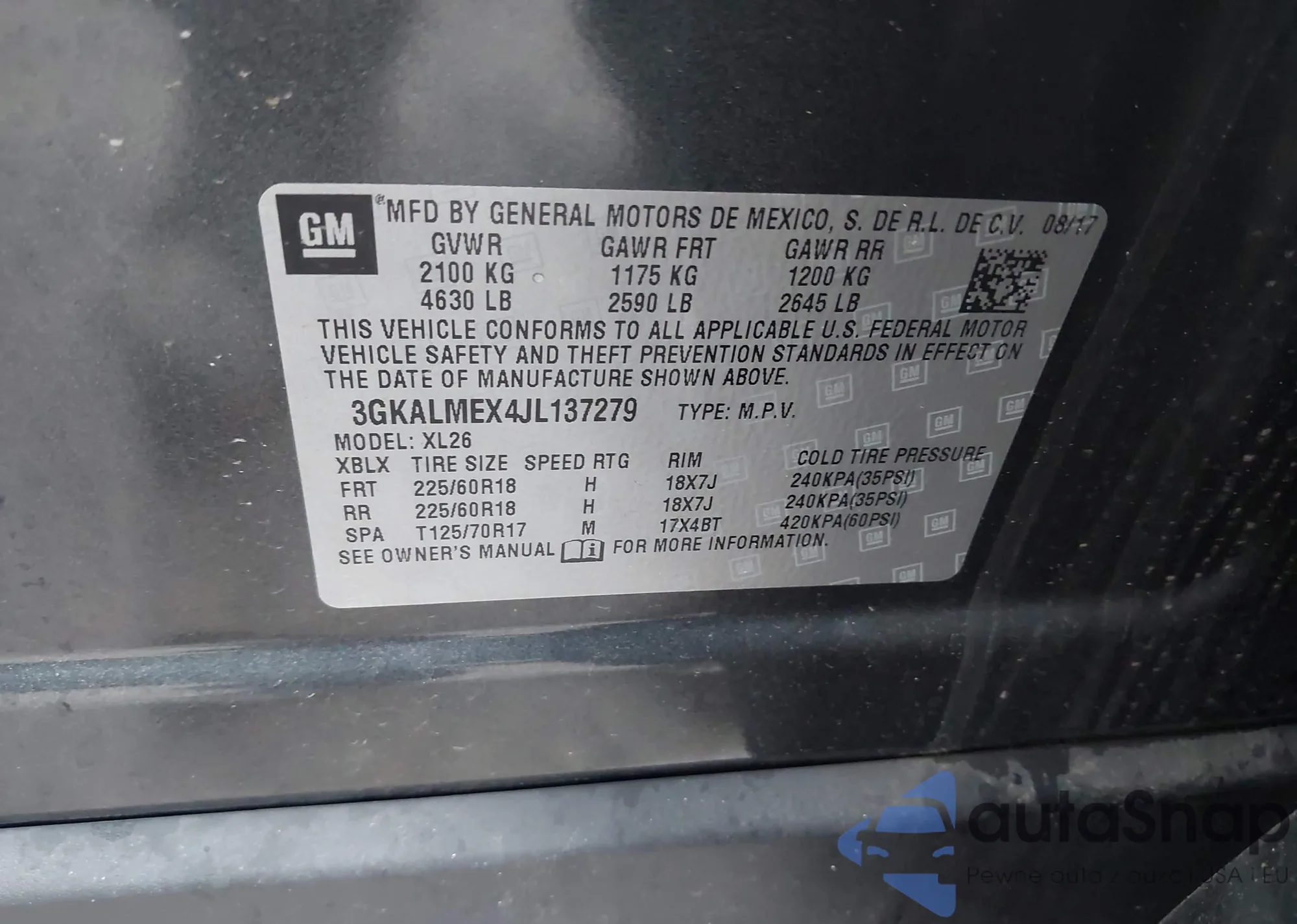 • VIN 2GNALBEK6F1173608