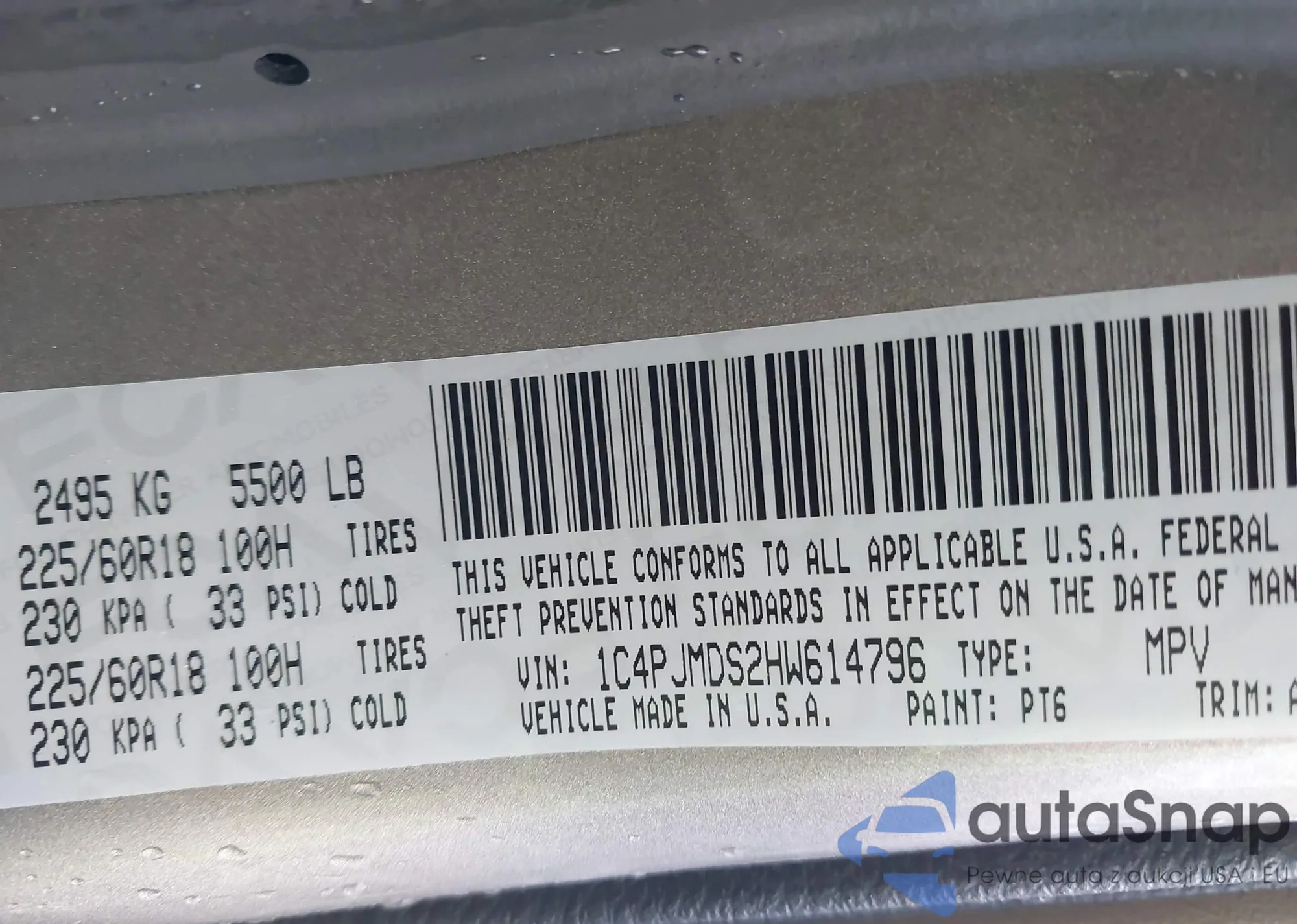 • VIN 1C4PJMDS2HW614796