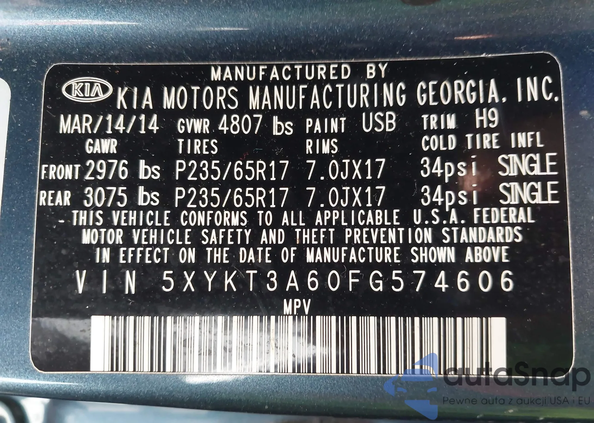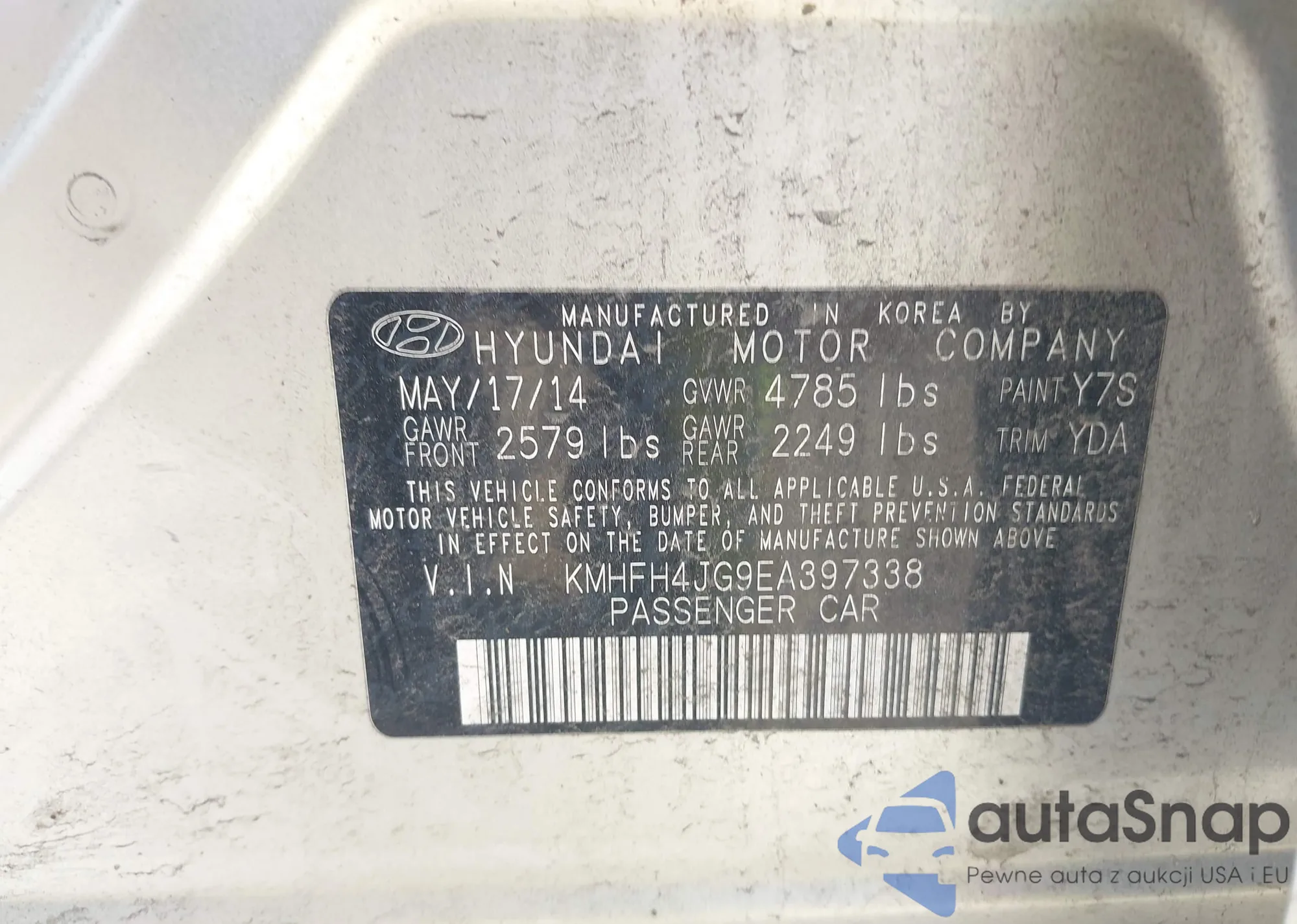 LOT: 42352208 VIN: KMHFH4JG9EA397338