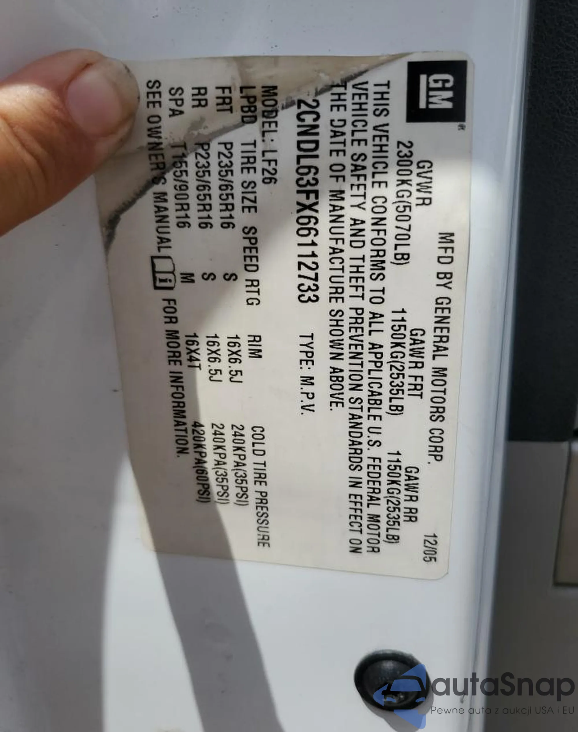• VIN 5TETU62N86Z227913