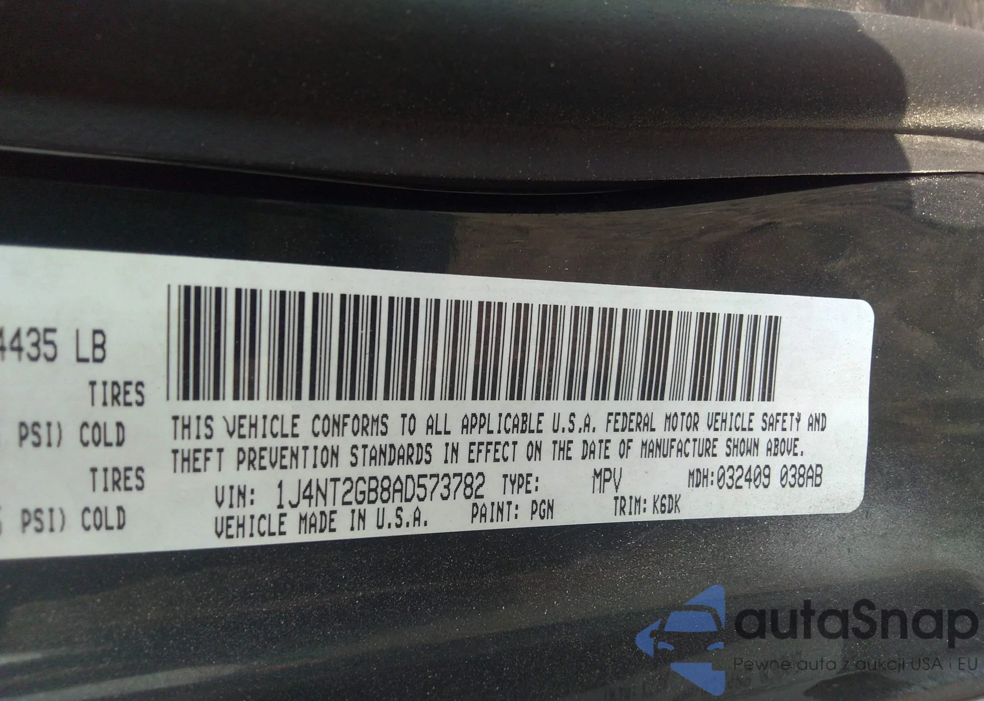 • VIN 1J4NT2GB8AD573782