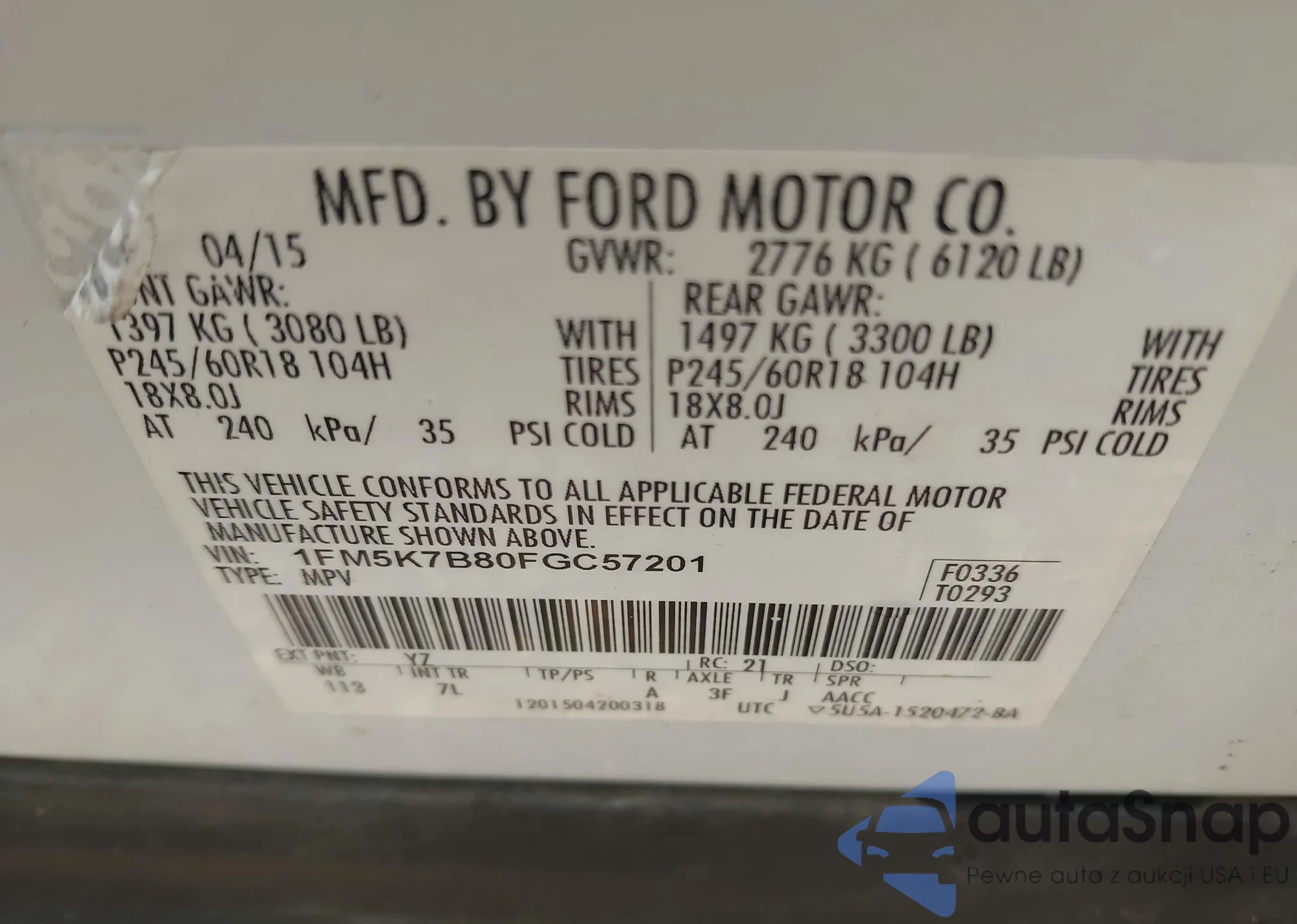 • VIN 1FM5K7B80FGC57201