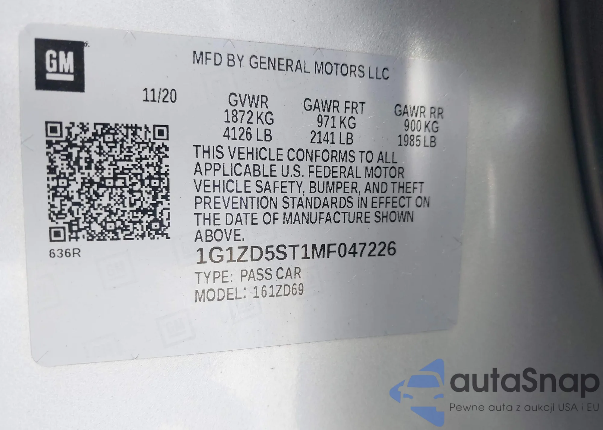 LOT: 42434105 VIN: 1G1ZD5ST1MF047226