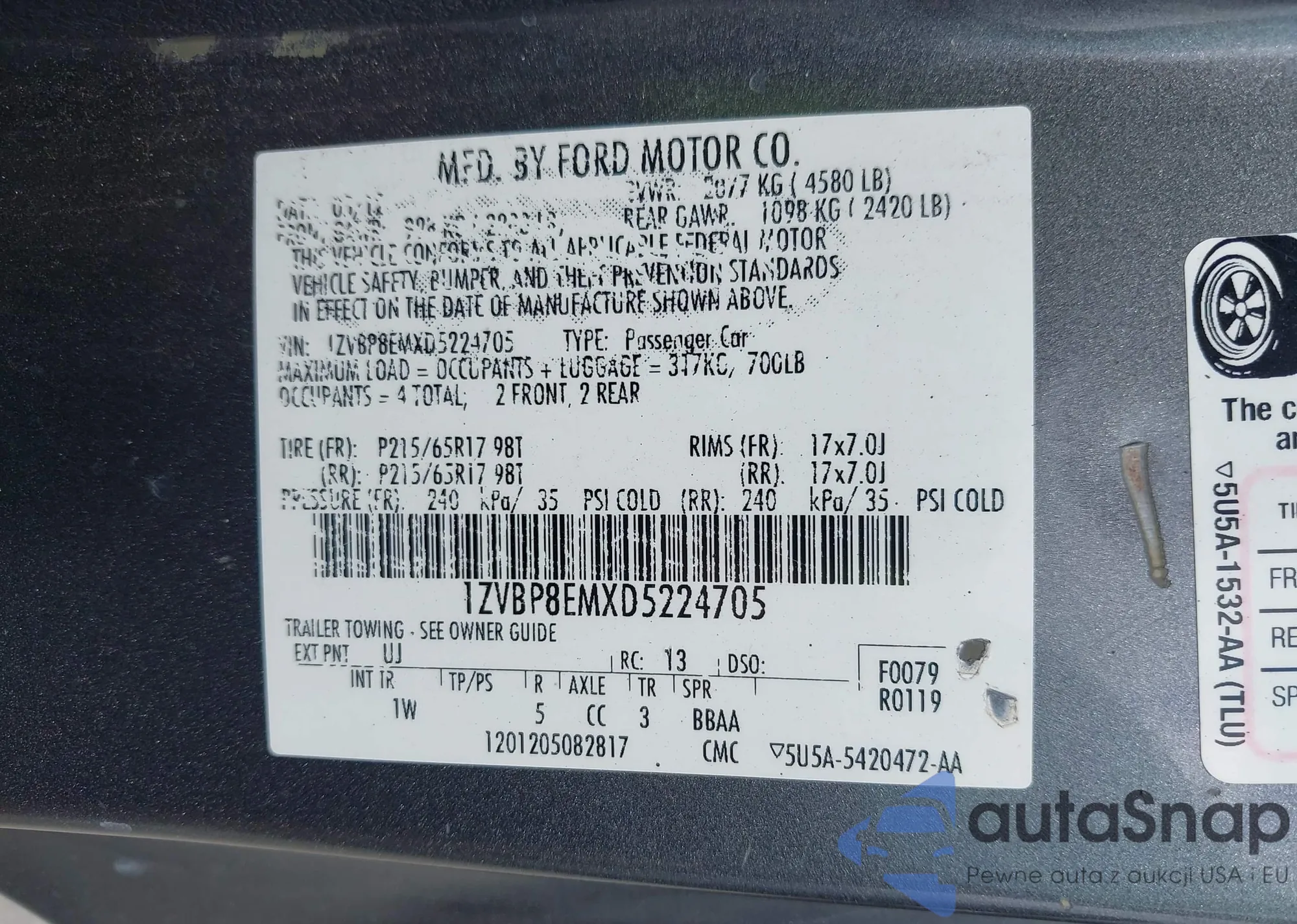 • VIN 1ZVBP8EMXD5224705