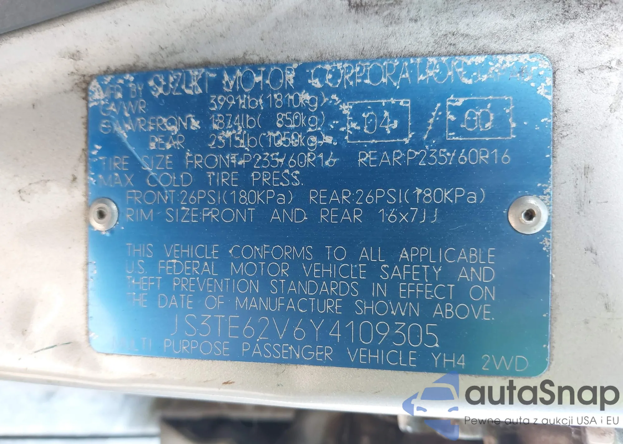 • VIN JS3TE62V6Y4109305