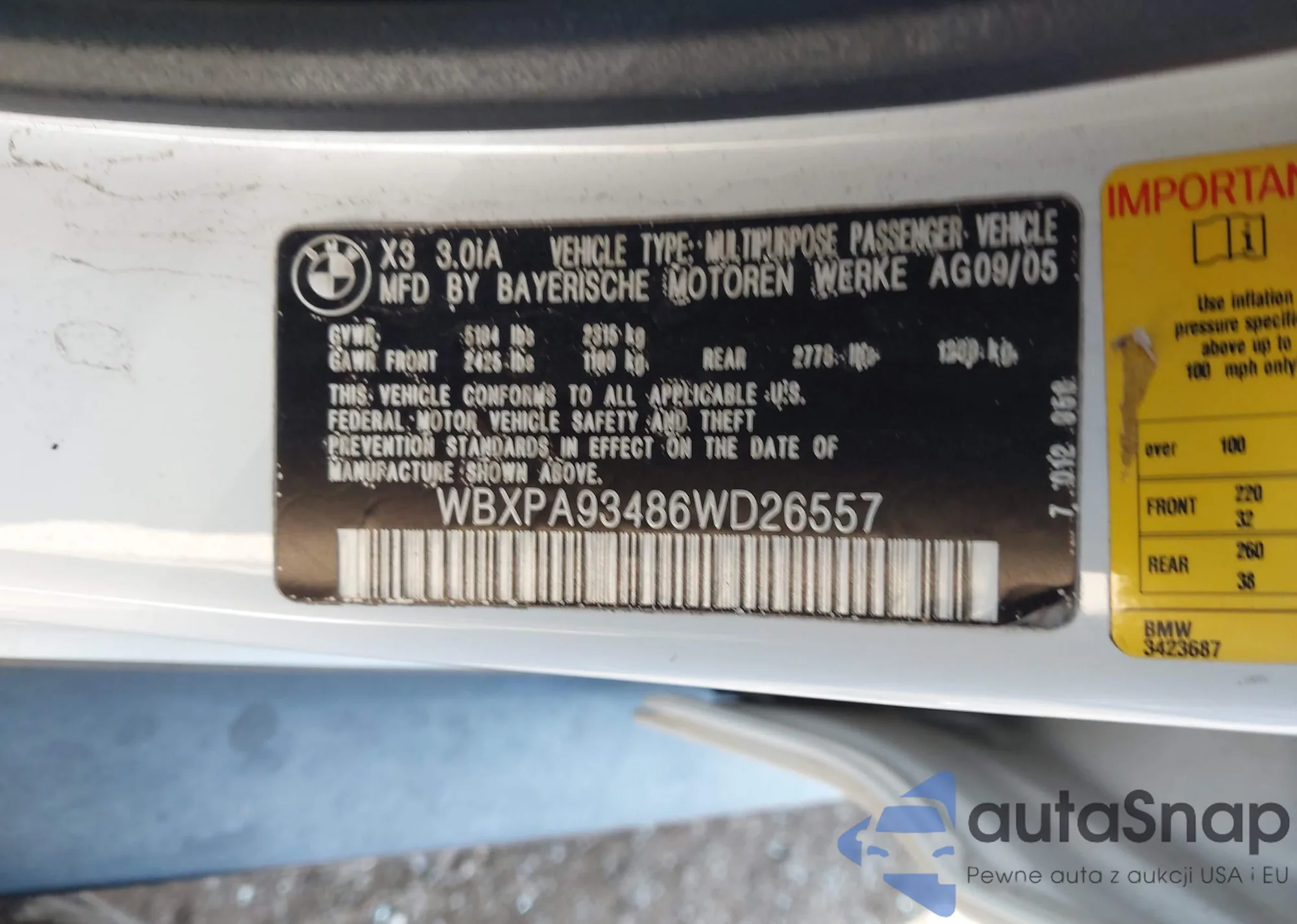 LOT: 42282207 VIN: WBXPA93486WD26557