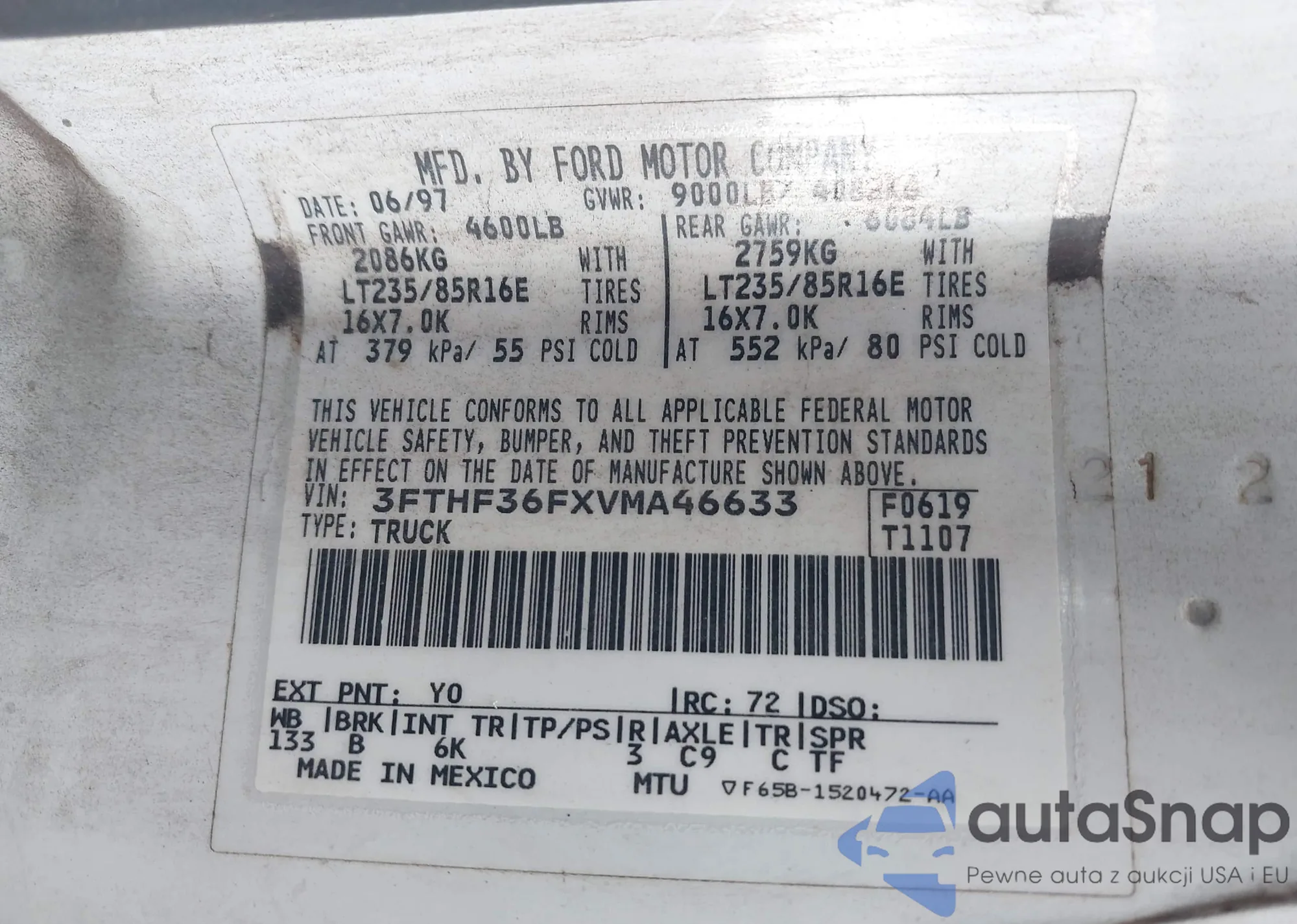 LOT: 39477422 VIN: 1FTYR14UXWPA33972