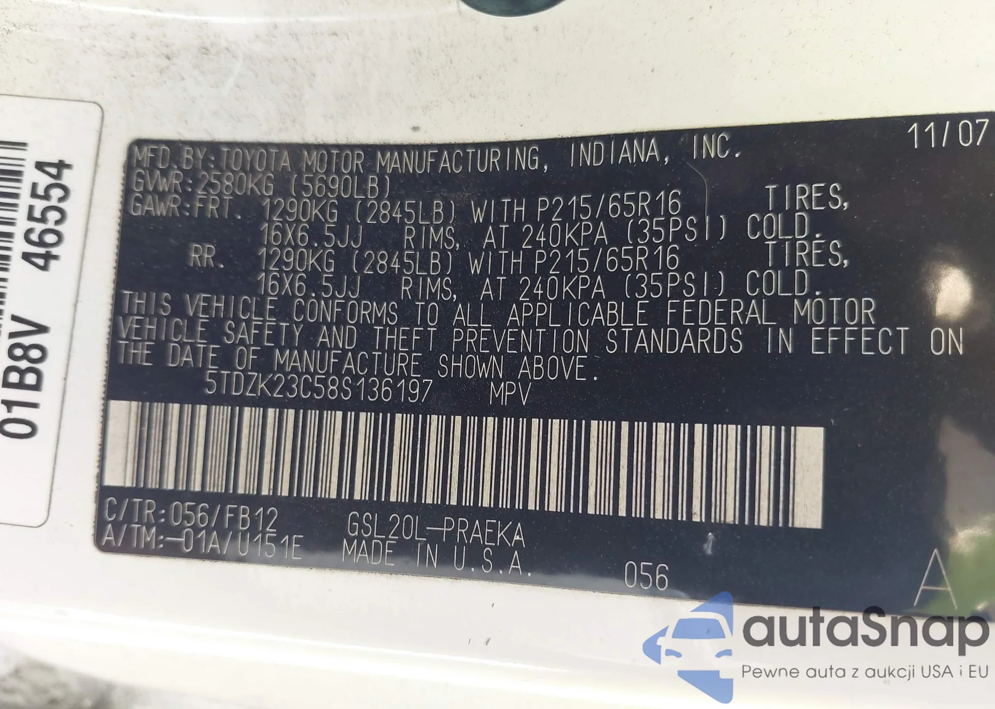 LOT: 40371134 VIN: 5TDZK22C07S017618
