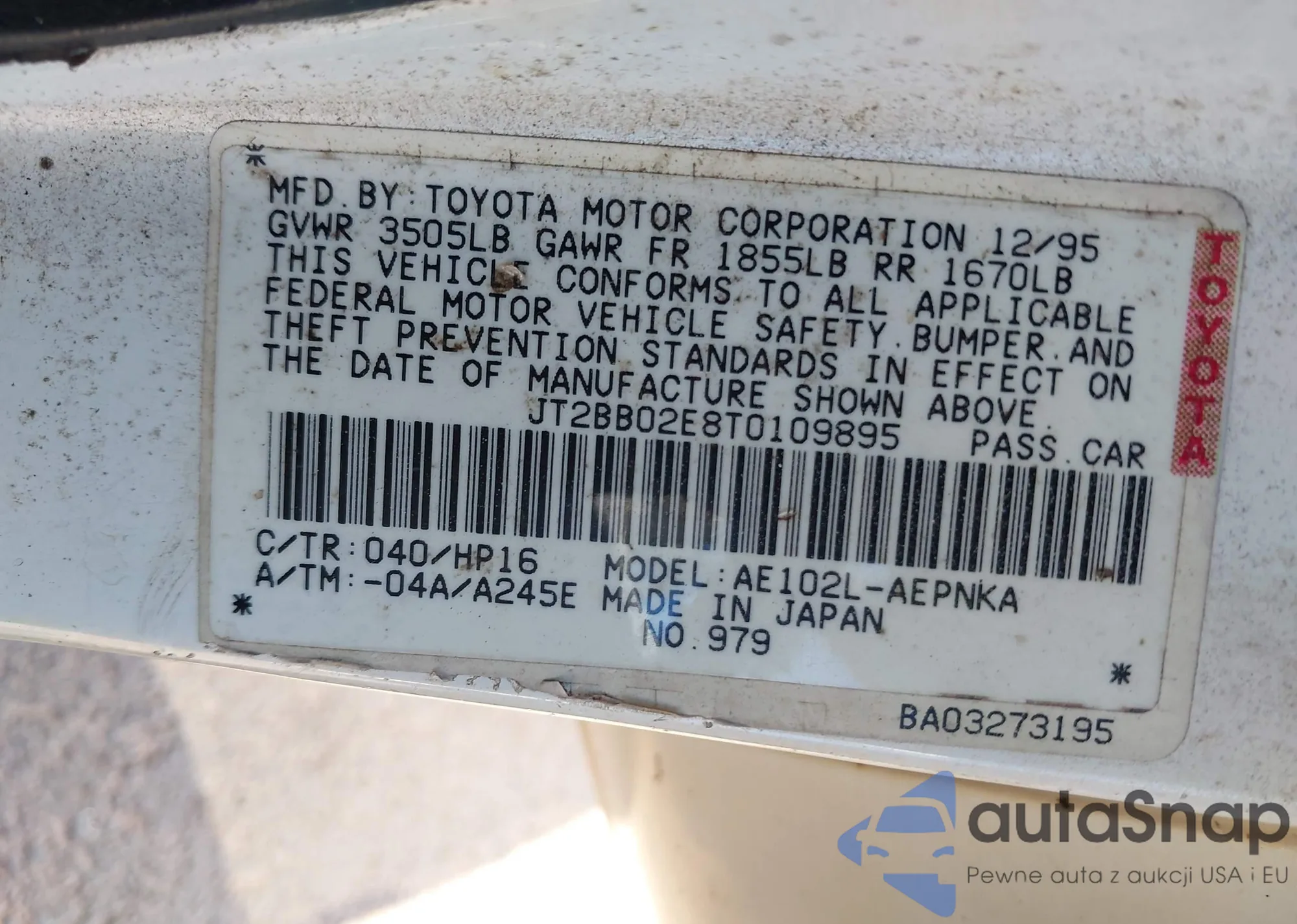 • VIN JT2BB02E8T0109895