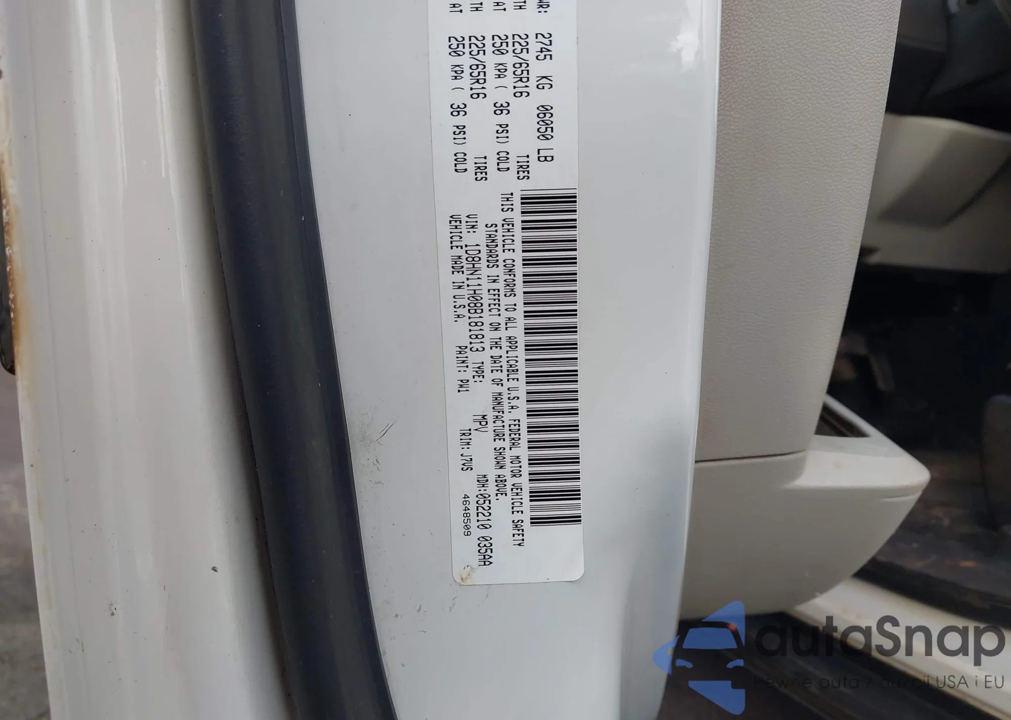 LOT: 42379571 VIN: 5FNRL387X8B008265